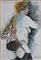 Mario Bonini (Roma, sec. XX). Figura con giarrettiera, 1983. Disegno ad inchiostro e acquarello su carta, firma e data in basso a destra, con cornice. Sul retro etichetta del certificato di garanzia e autenticità della “Galleria d’arte il Babuino”. cm35x25.