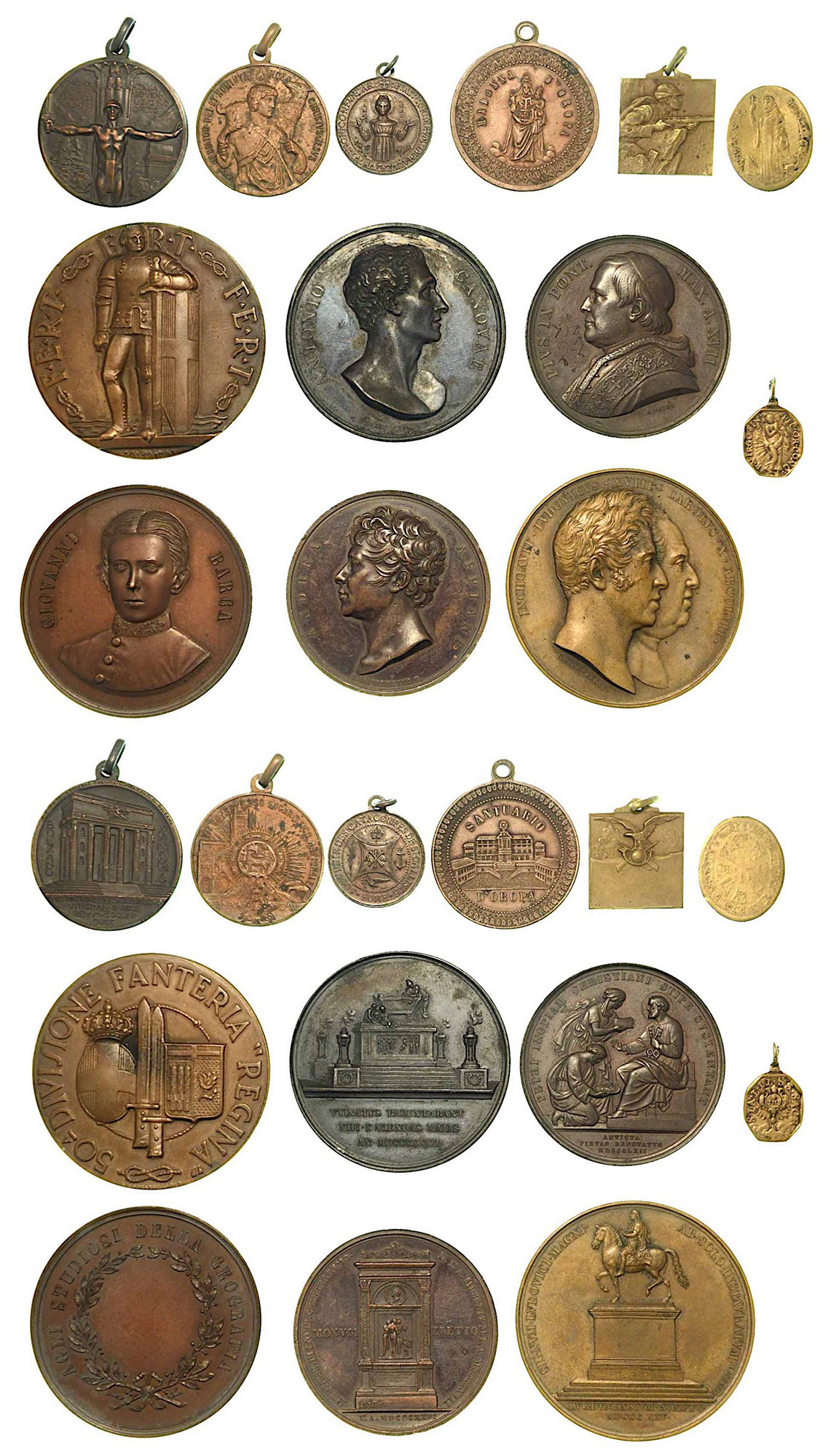 Lotto di cinquantuno medaglie italiane ed estere in argento, bronzo e vari metalli di argomento civile e religioso.,