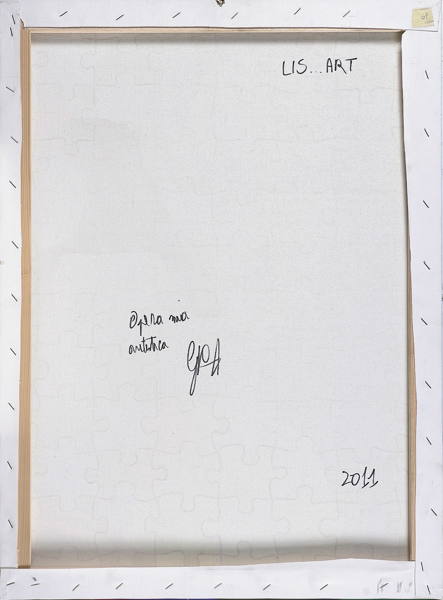 ARZUFFI GIANPIETRO Lis...Art. 2011. Tecnica mista su tela. Cm 60,00 x 80,00 x 2,00. Firma in basso a destra. Al retro firma per autentica, titolo e data. Opera archiviata come da documentazione fotografica allegata riportante il relativo numero d'archivio.