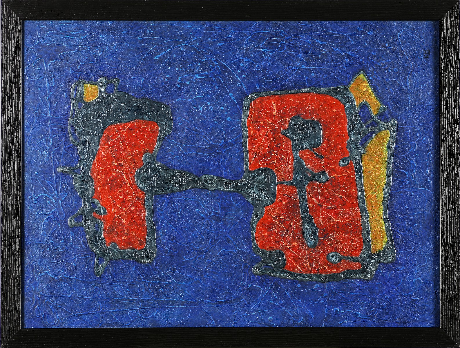 MORRIS FRANK (n. 1936) Senza titolo. Tecnica mista su tavola. Cm 60,00 x 80,00. Siglato in basso a destra. Cornice presente