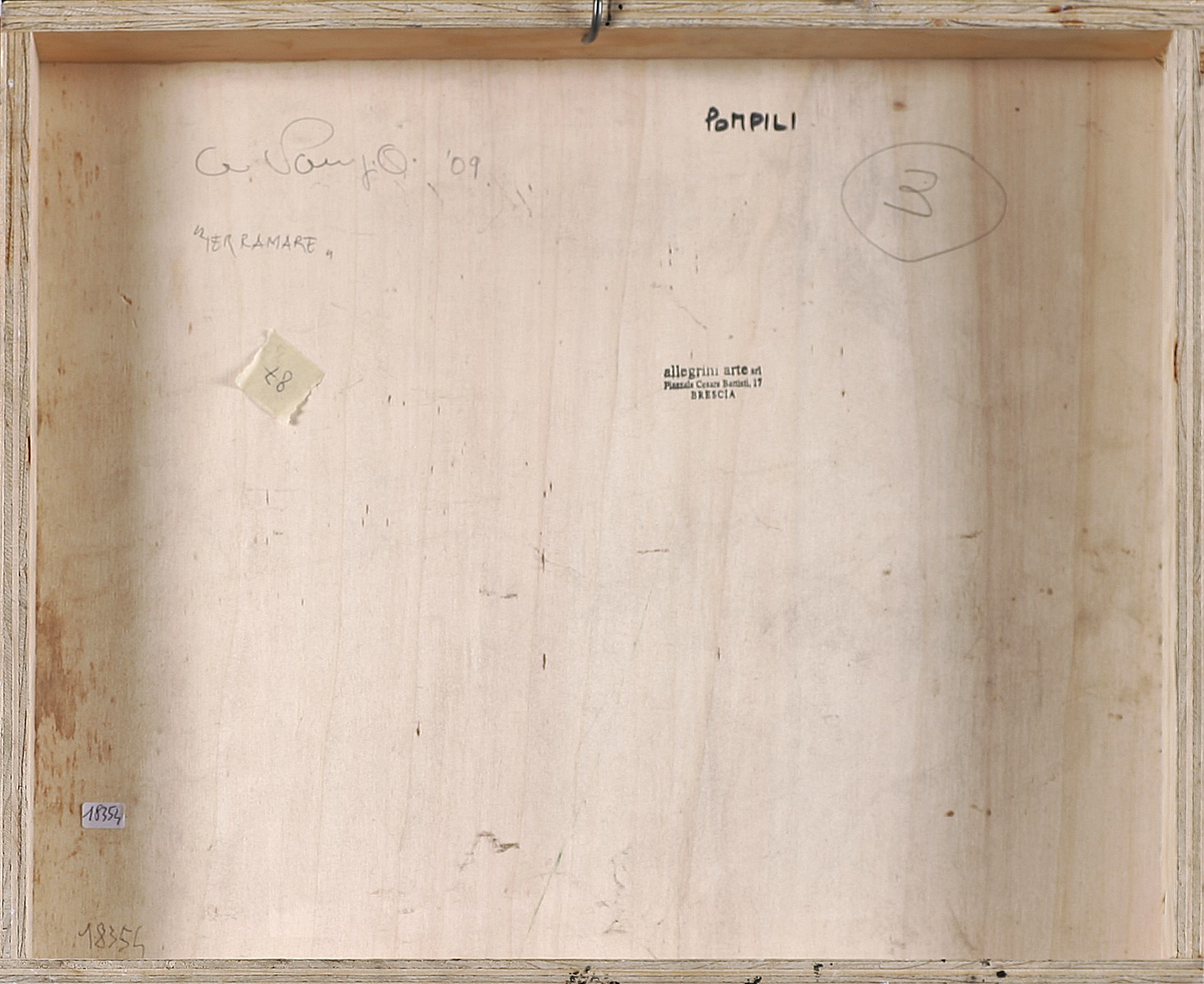 POMPILI GRAZIANO (n. 1943) Terramare. 2009. Olio su lamiera. Cm 45,00 x 38,50 x 6,00. Al retro firma, titolo e data.