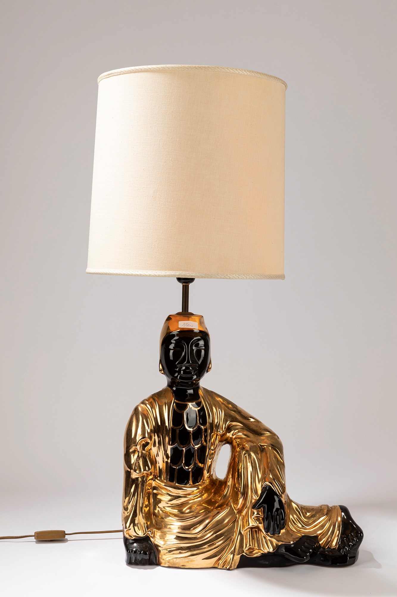 Manifattura Italiana - Lampada da tavolodm cm 46, H cm 84 in ceramcica smaltata oro e nero.