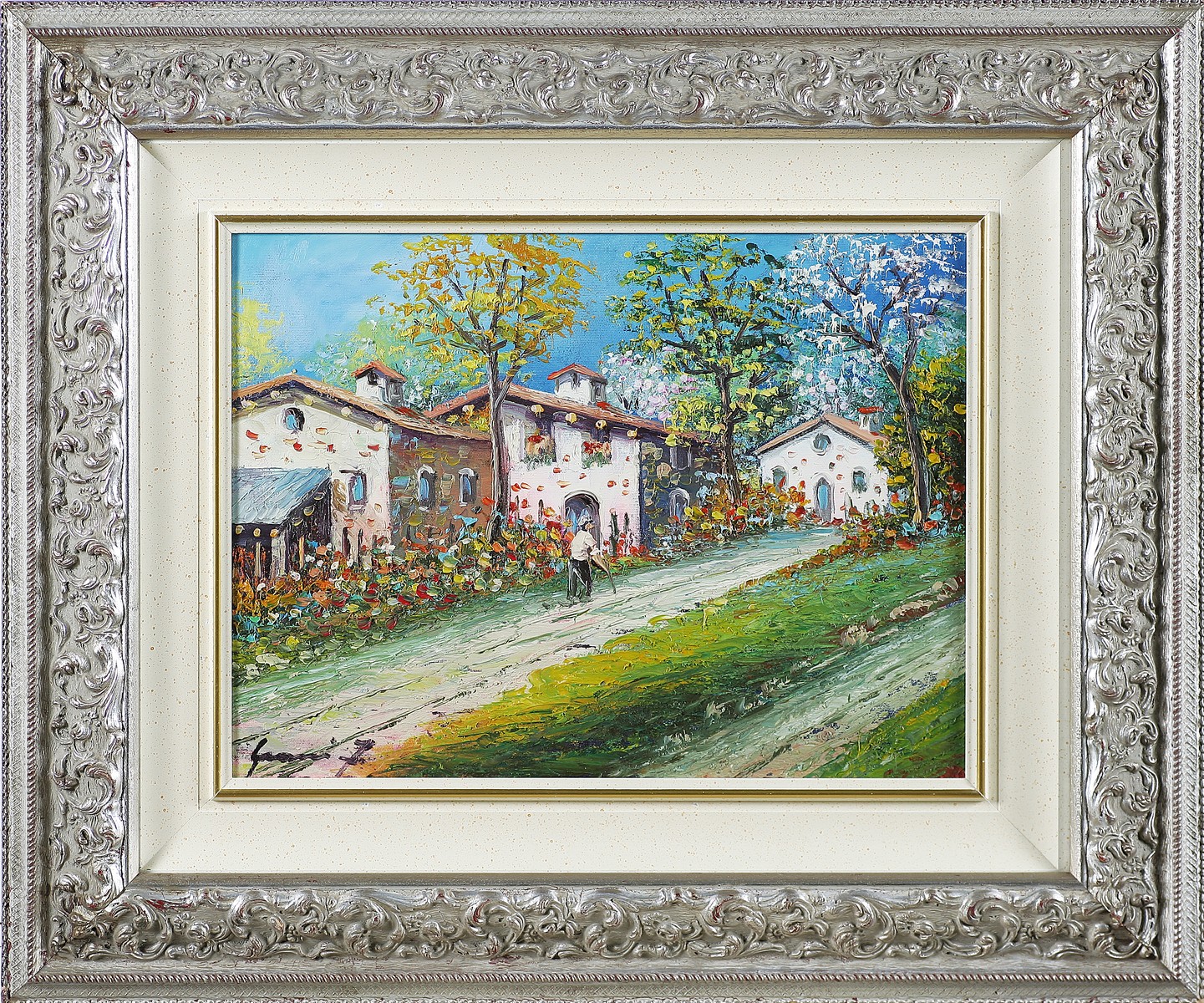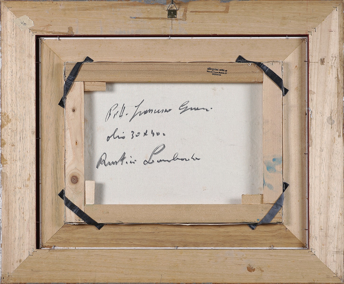 Anonimo Rustico lombardo. Olio su tela. Cm 40,00 x 30,00. Firma in basso a sinistra. Firma e titolo al retro. Cornice presente