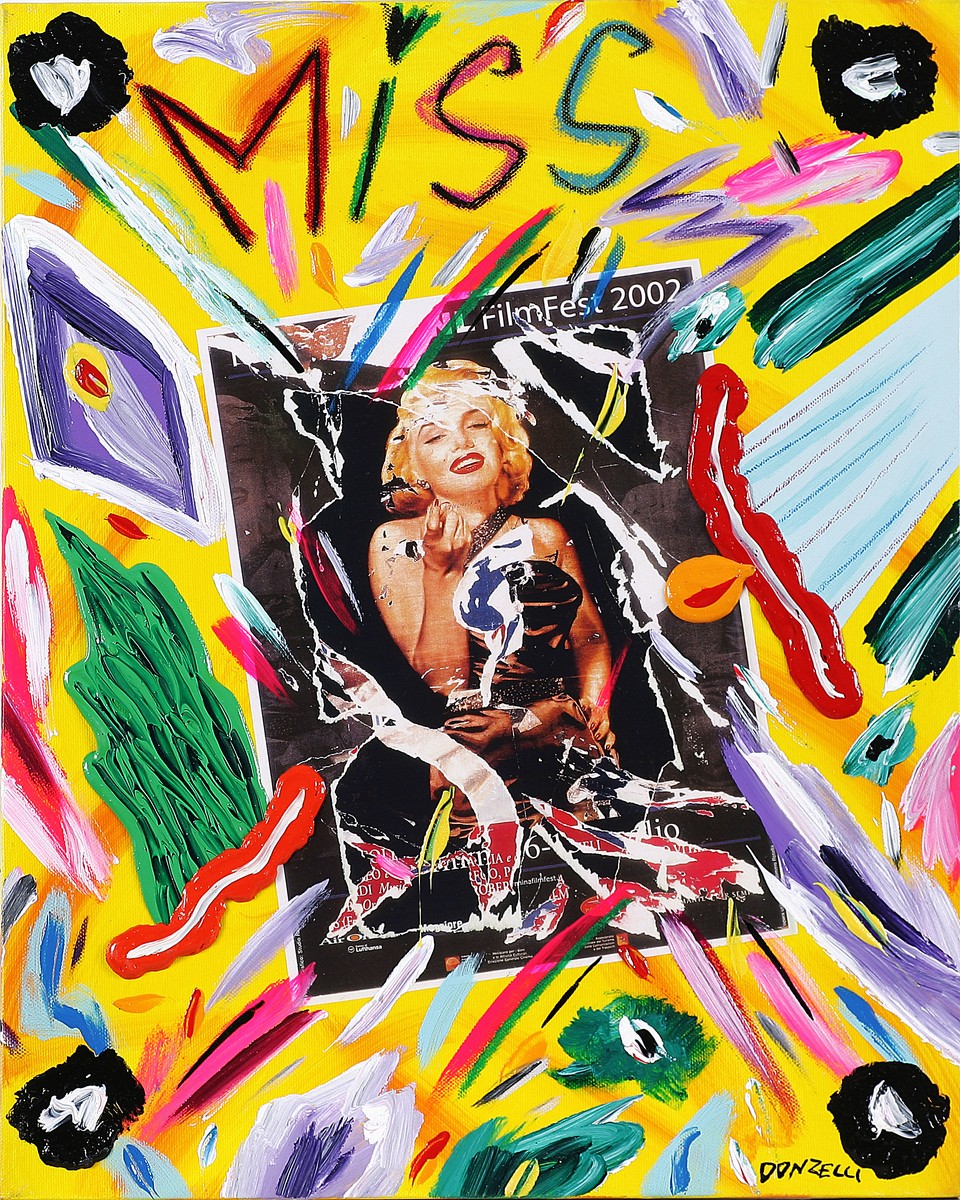 DONZELLI BRUNO (n. 1941) Miss. Tecnica mista su tela. Cm 40,00 x 50,00. Firma in basso a destra. Al retro firma e titolo.