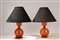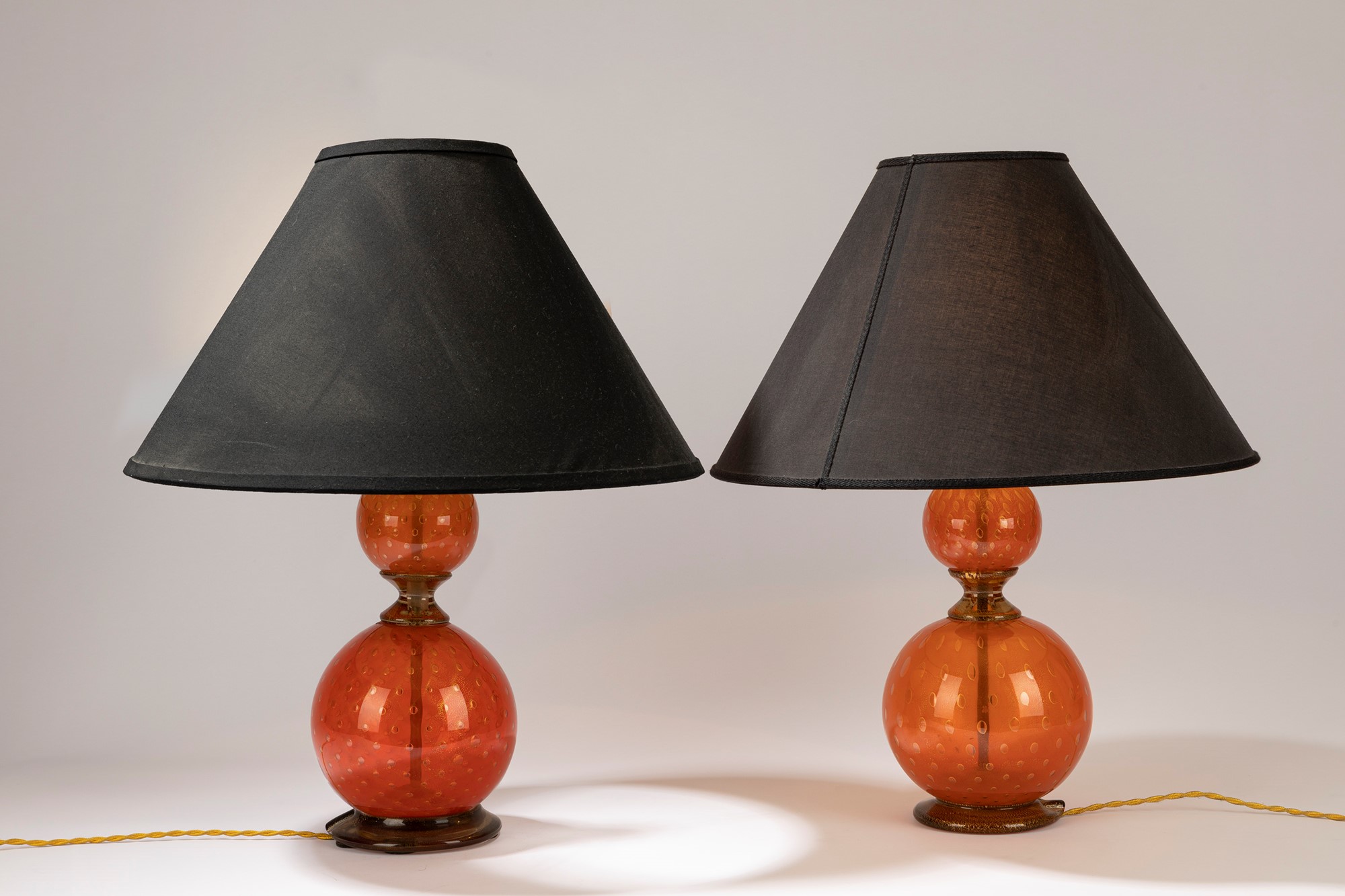 Manifattura Italiana - Coppia di lampade da tavolodm cm 46, H cm 55 in vetro soffiato arancio.