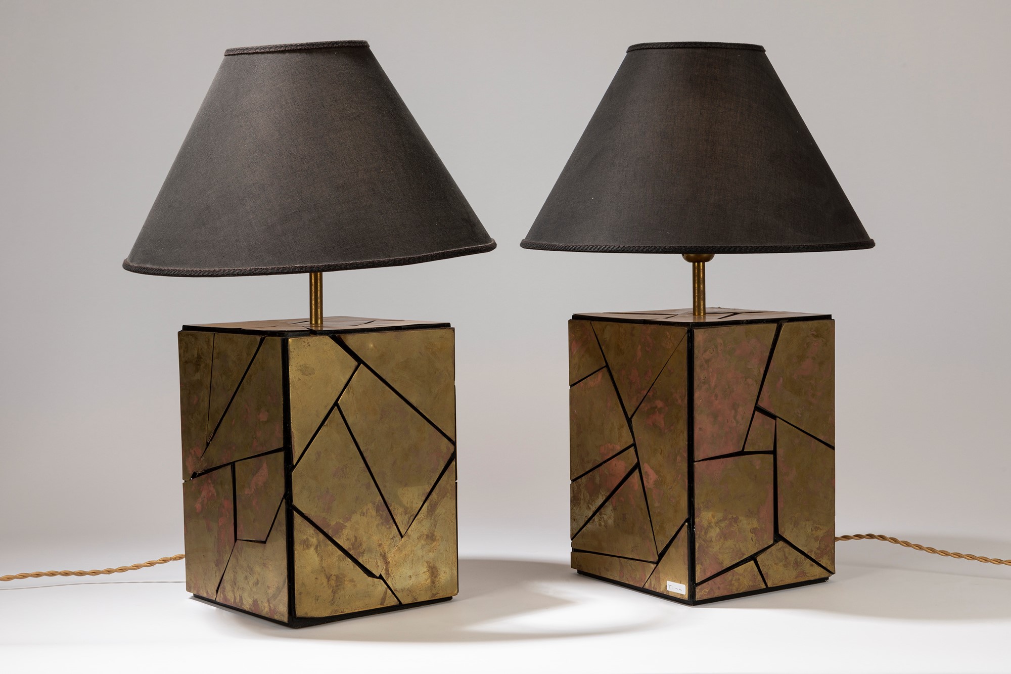 Manifattura Italiana - Coppia di lampade da tavolocm 61 x 39 in legno ricoperto di lamine ottone.