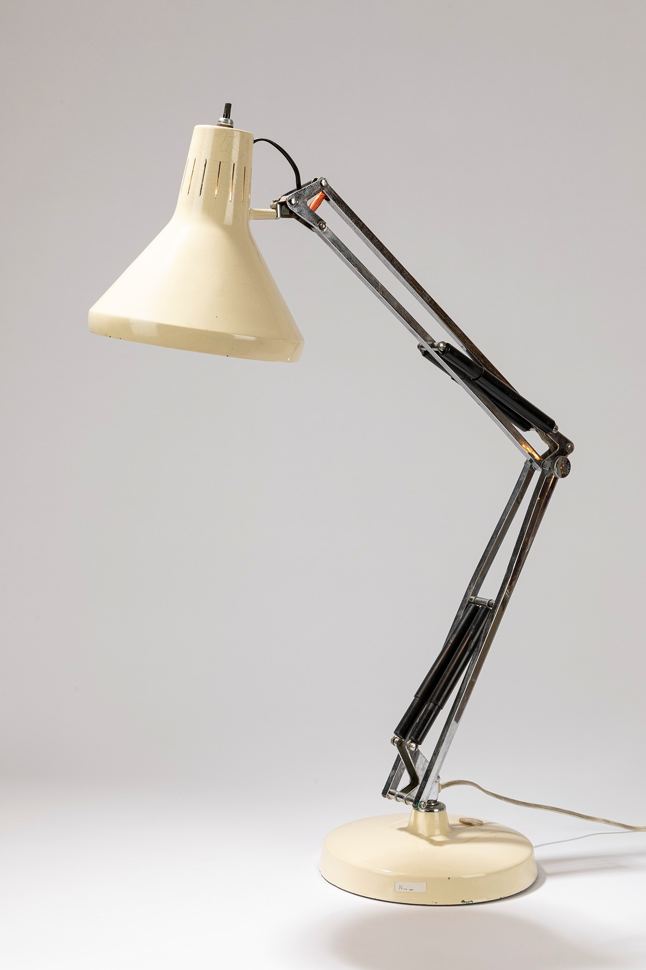 Manifattura Italiana - Lampada da scrivania22cm x 60 cm x h. max 100 cm. in metallo cromato e laccato bianco.