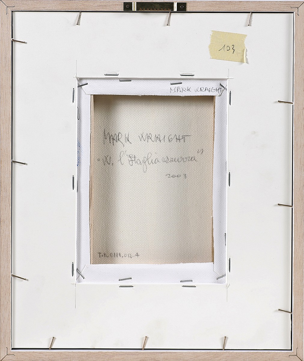 WRIGHT MARK (n. 1962) W l'Italia azzurra. 2003. Olio su tela . Cm 15,00 x 20,00. Autentica dell'artista su fotografia. Al retro firma, data e titolo. Cornice presente