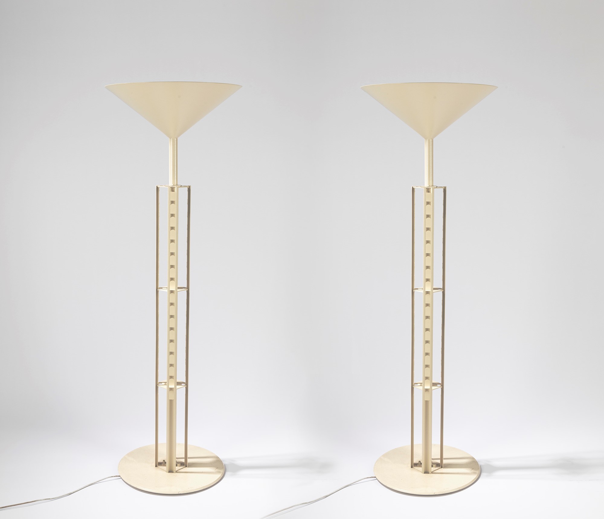 Manifattura Italiana - Coppia di lampada da terradm cm 54, H cm 161 in metallo verniciato bianco.