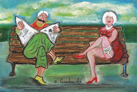 LOMBARDO SALVO (n. 1948) In riva al mare. Olio su tavola. Cm 30,00 x 20,00. Firma in basso. Autentica dell'artista su fotografia. Opera archiviata presso l'Archivio Salvo Lombardo come da numero d'archivio riportato al retro; al retro titolo e firma.