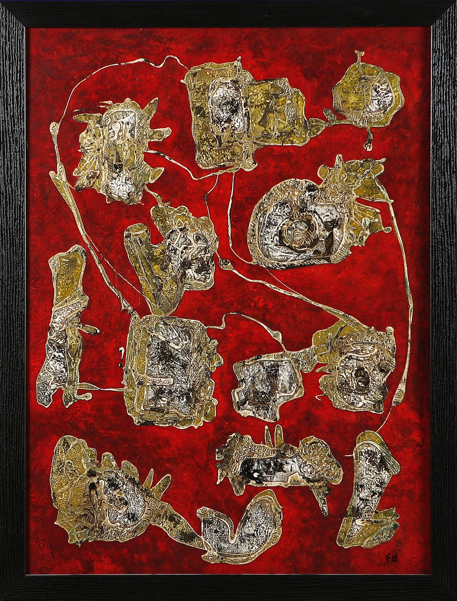MORRIS FRANK (n. 1936) Senza titolo. Tecnica mista su tavola. Cm 60,00 x 80,00. Siglato in basso a destra. Cornice presente