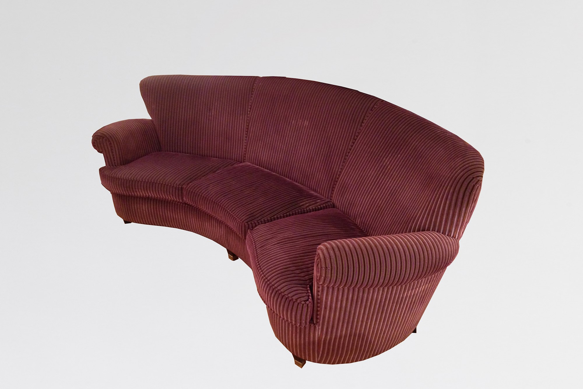 Manifattura Italiana - Divanocm 245 x 120 x 92 di forma curva rivestito in velluto a coste.