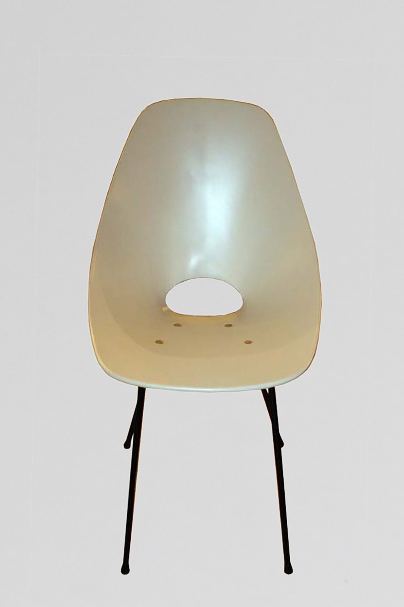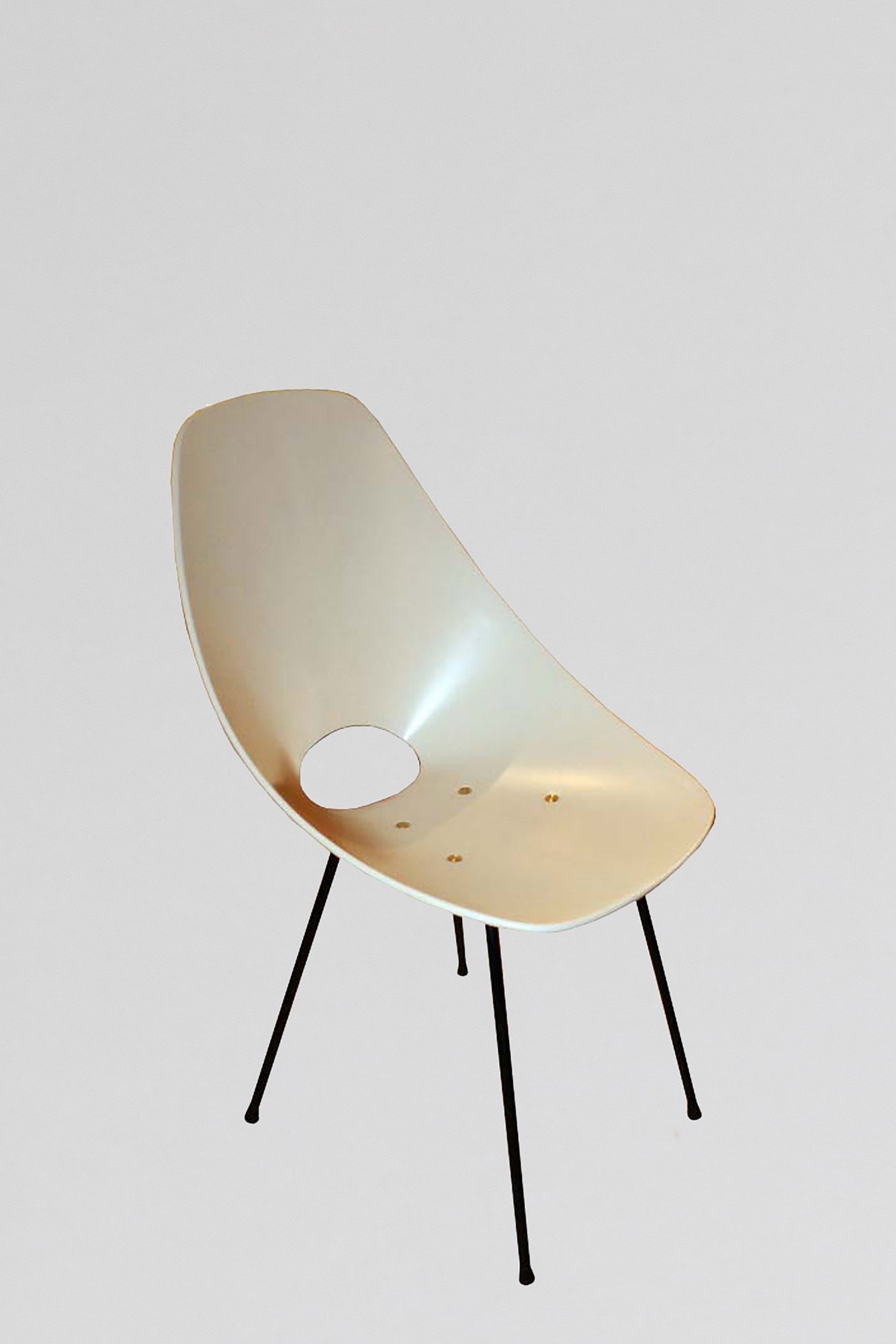 Vittorio Nobili - Quattro sedie Medeacm 47 x 55 x 85 in compensato curvato laccato bianco con gambe in metallo verniciato nero. Prod. Tagliabue. Segnalazione al "Compasso d'oro 1956"