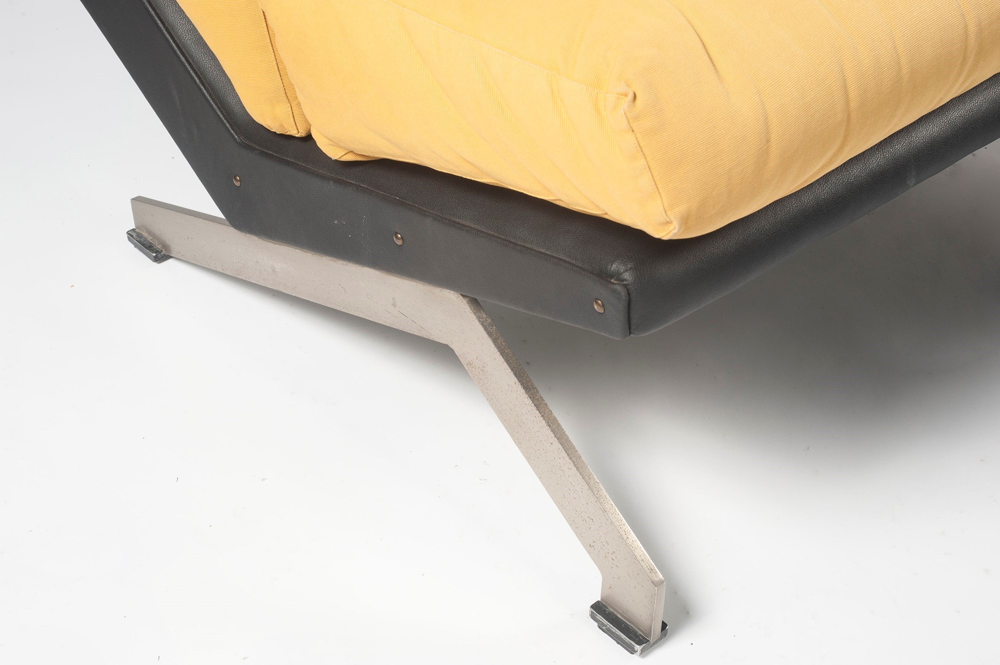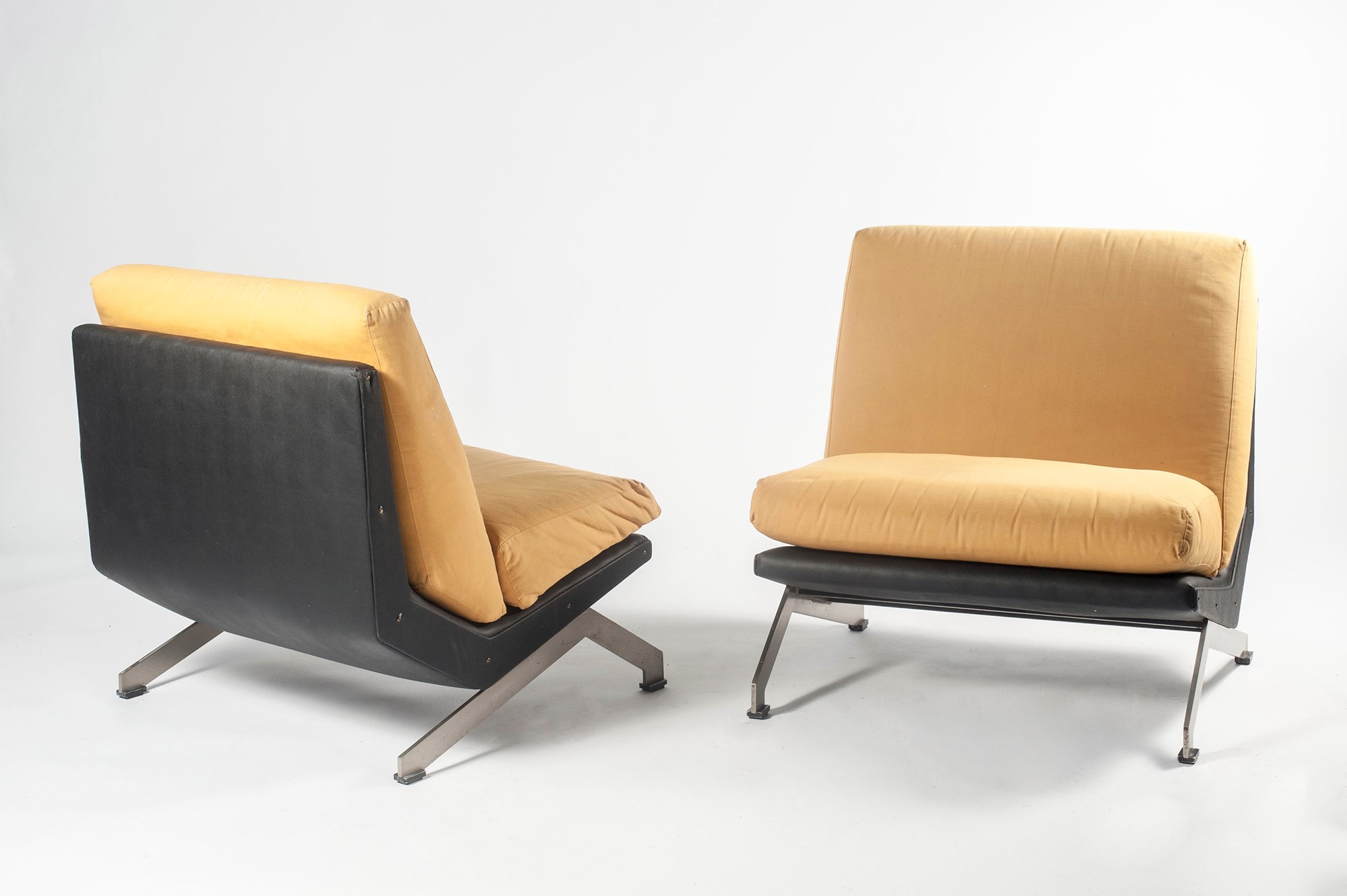 Gianni Moscatelli Formanova - Due poltronecm 63 x 80 x 75 Alexandra. 1969. Acciaio spazzolato, skai, tessuto. Formanova.