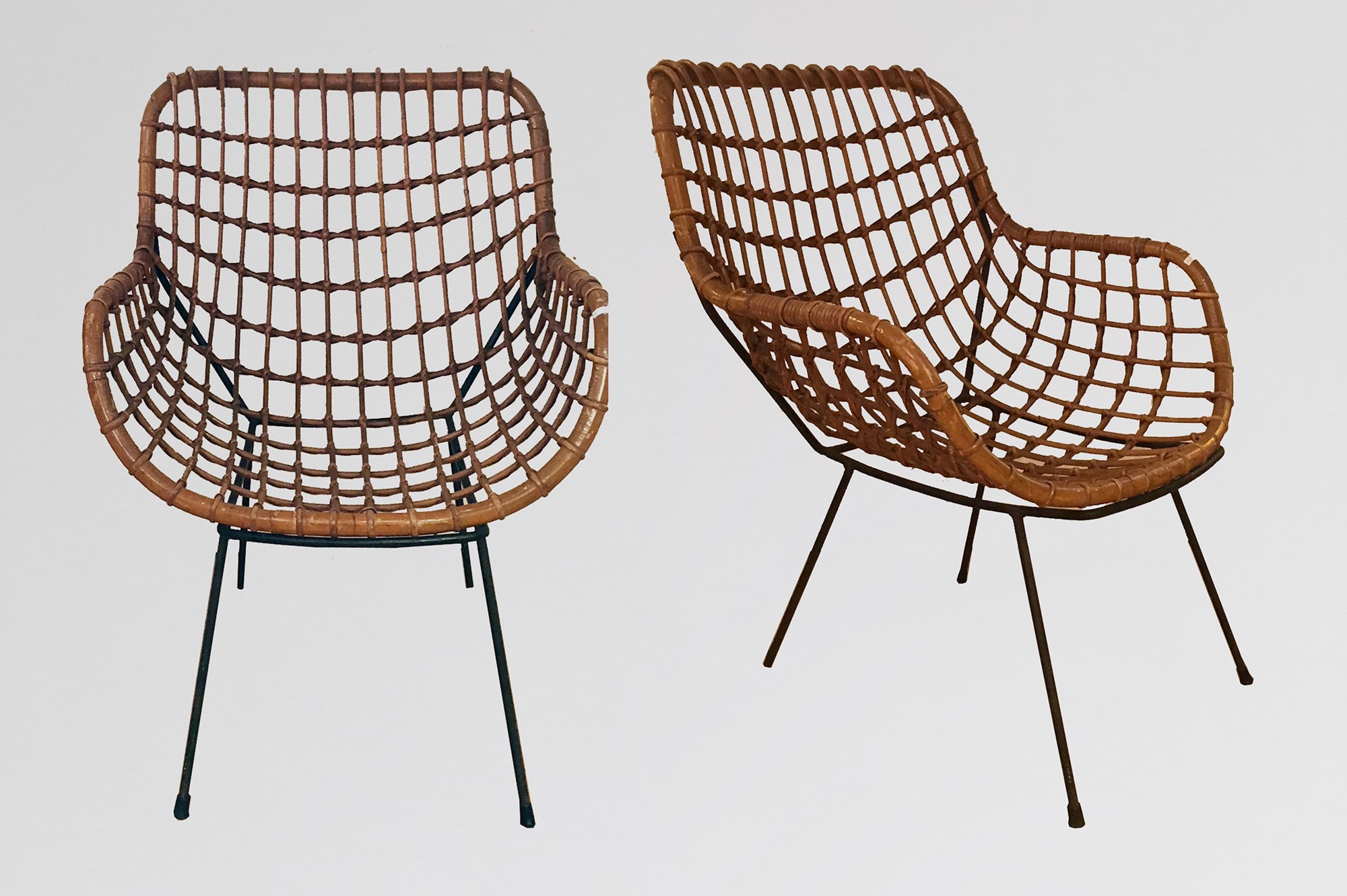 Manifattura Italiana - Coppia di poltroncinecm 63 x 64 x 86 con struttura in ferro, seduta in midollino.