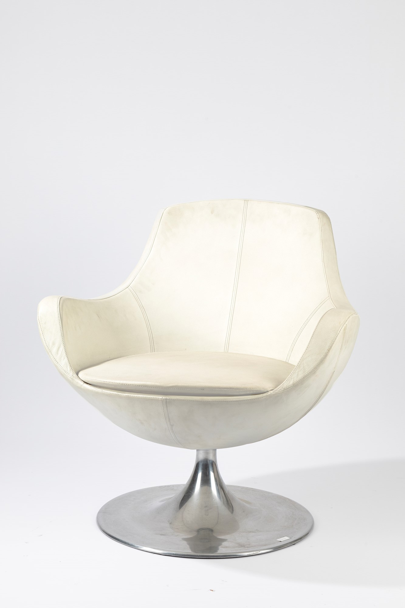 Manifattura Italiana - Poltroncinacm 80 x 74 x 84 con base in acciaio cromato, imbottitura rivestita in pelle bianca.