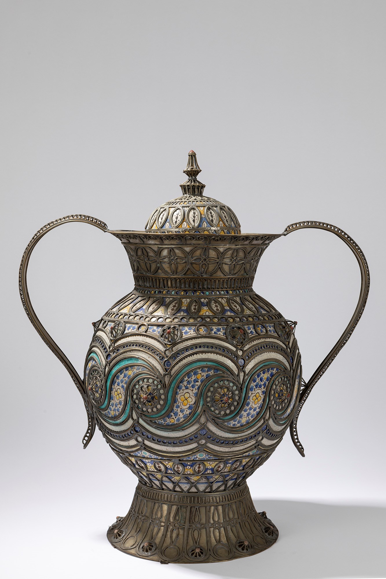 Manifattura marocchina - Vaso biansatocm h 66 x 61 in metallo e smalto.