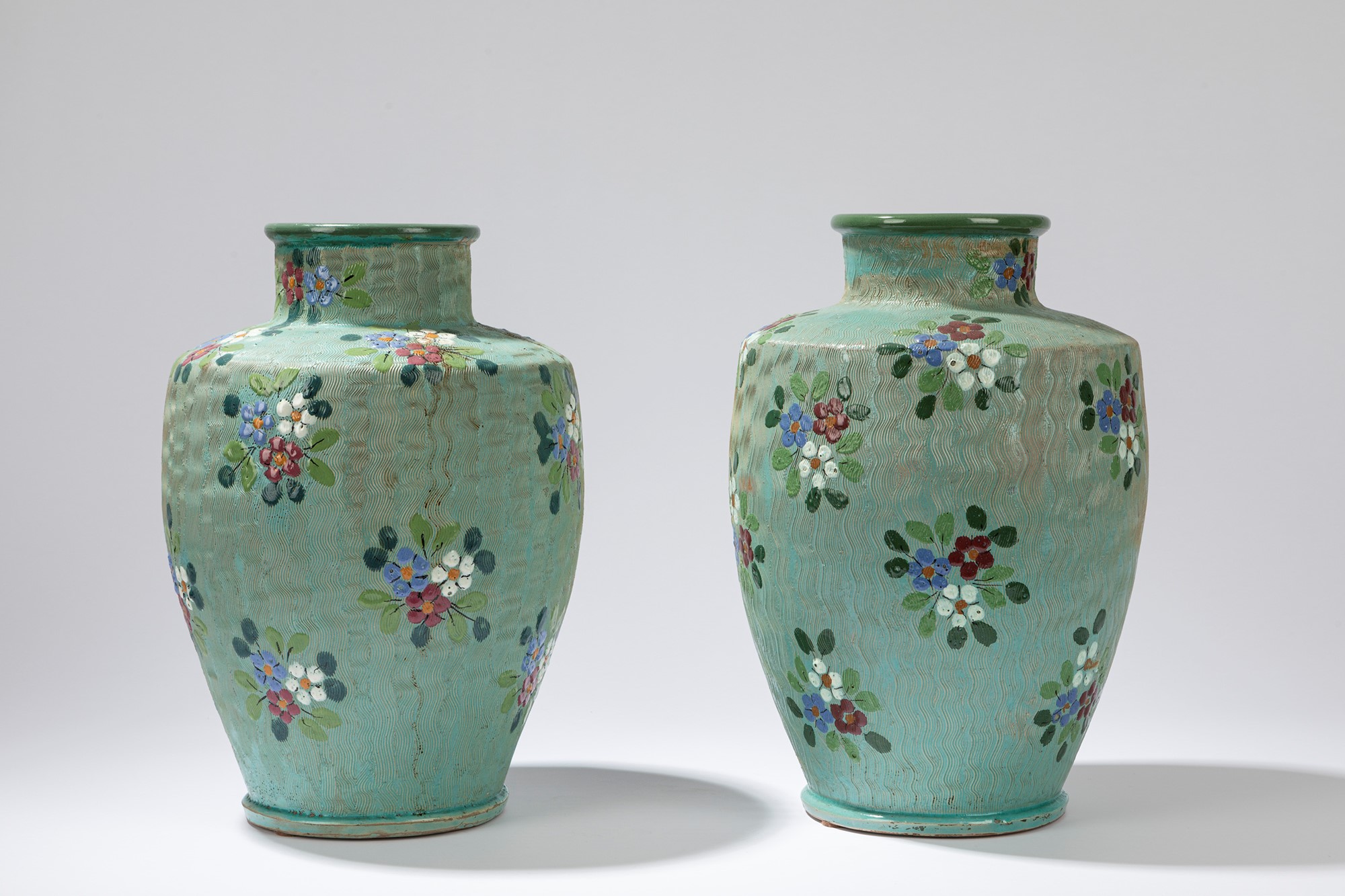 Manifattura Italiana - Coppia di vasicm h 34 x 24 in ceramica smaltata con decoro floreale.