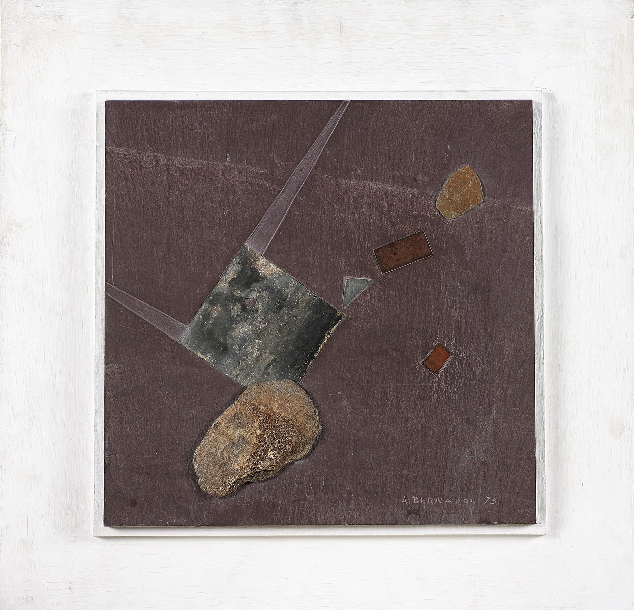 BERNADOU ANDRE GABRIEL (1910 - 1985) Senza titolo. 1973. Pietra. Cm 40,00 x 40,00. Firma e data in basso a destra. Cornice presente