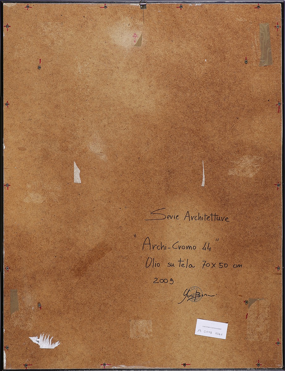 BORRONI SARA (n. 1971) Archi-Cromo 44. 2009. Olio su tela . Cm 50,00 x 70,00. Opera dalla serie Architetture. Al retro titolo, firma, data e timbro Sara Borroni arte. Autentica dell'artista su fotografia. Cornice presente