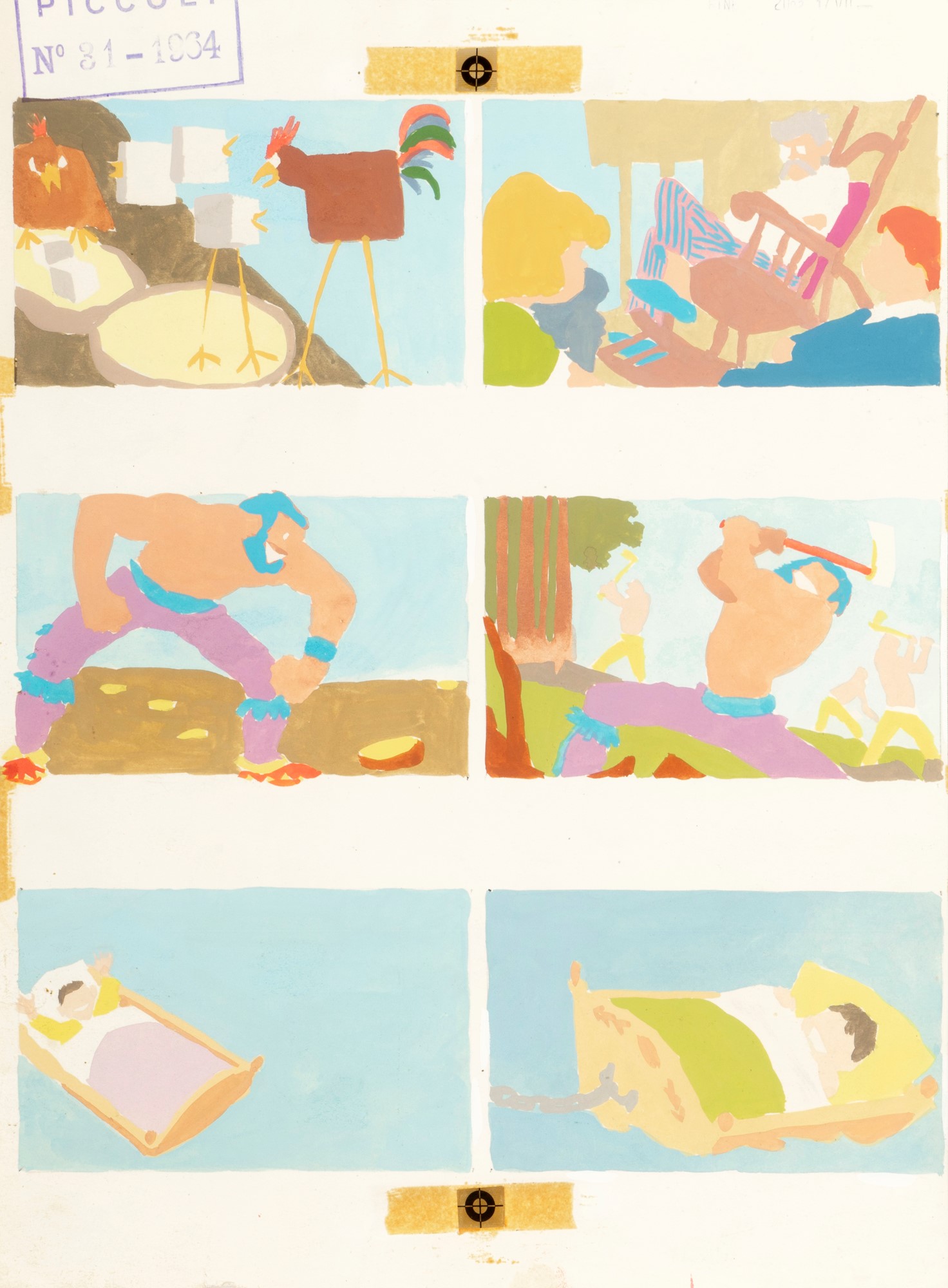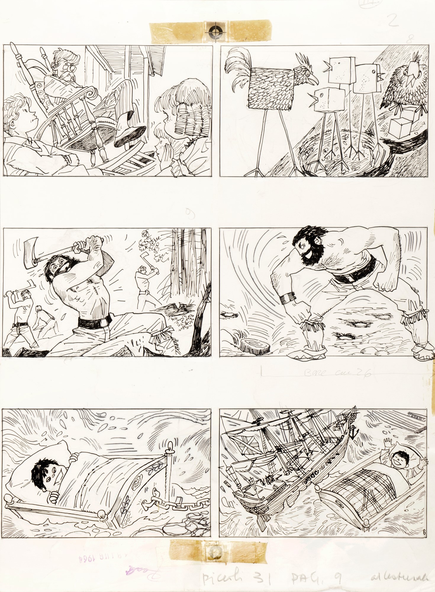 Tavola originale realizzata da Pratt per “Il favoloso West: I giganti burloni”, pag. 6 di questa ballata folk pubblicata per la prima volta sul Corriere dei Piccoli n. 31 nel 1964. Colorata al retro a tempera.