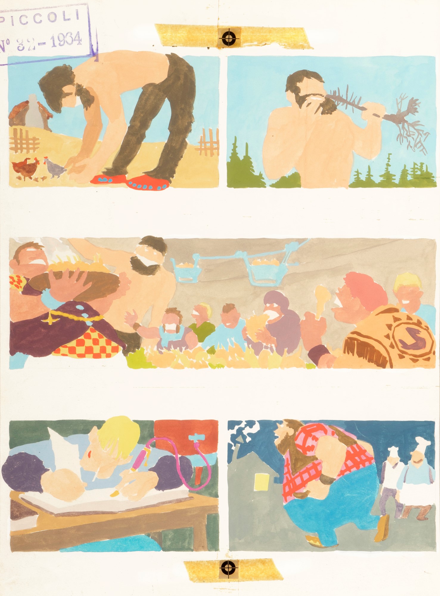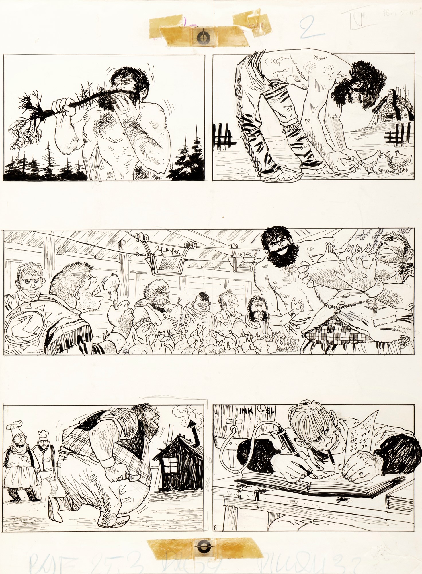 Tavola originale realizzata da Pratt per “Il favoloso West: I giganti burloni”, pag. 8 di questa ballata folk pubblicata per la prima volta sul Corriere dei Piccoli n. 32 nel 1964. Colorata al retro a tempera.
