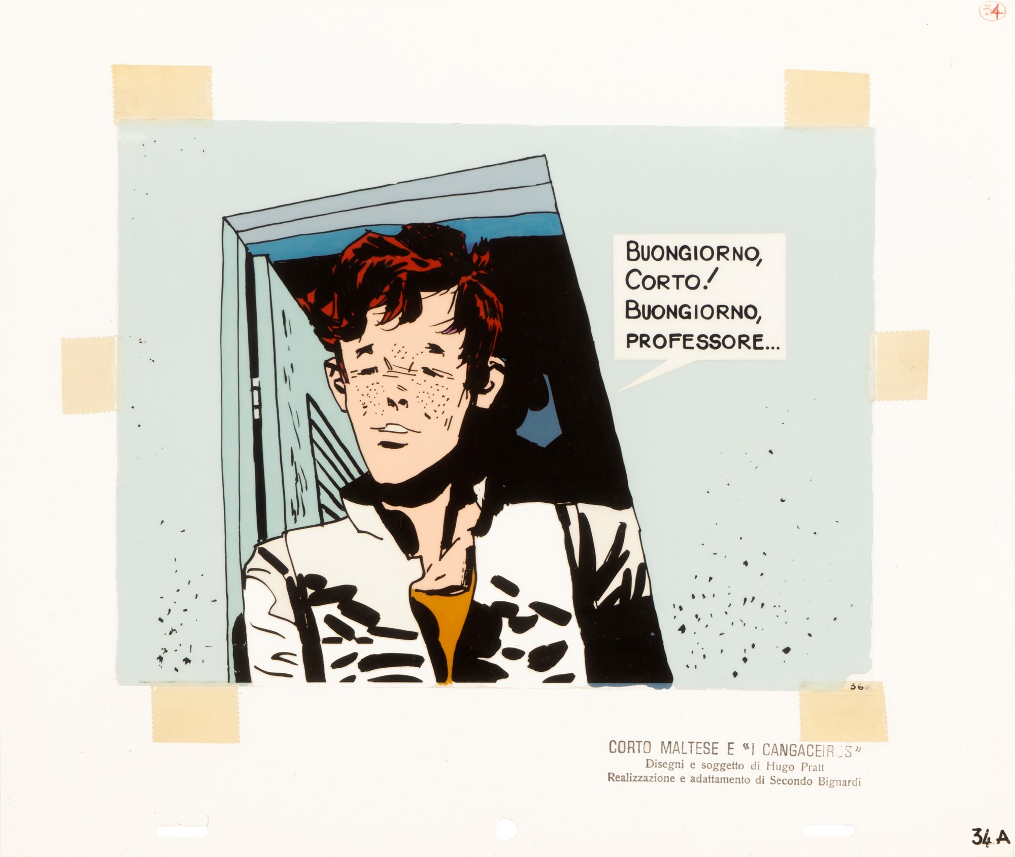 Cel originale (due fogli) realizzata dallo Studio Bignardi per il frame n. 34 de "I Cangaceiros", primo episodio della serie su Corto Maltese che sancisce la collaborazione di Pratt con lo studio di animazione modenese, episodio trasmesso per la prima volta nella trasmissione SuperGulp! nel 1972.