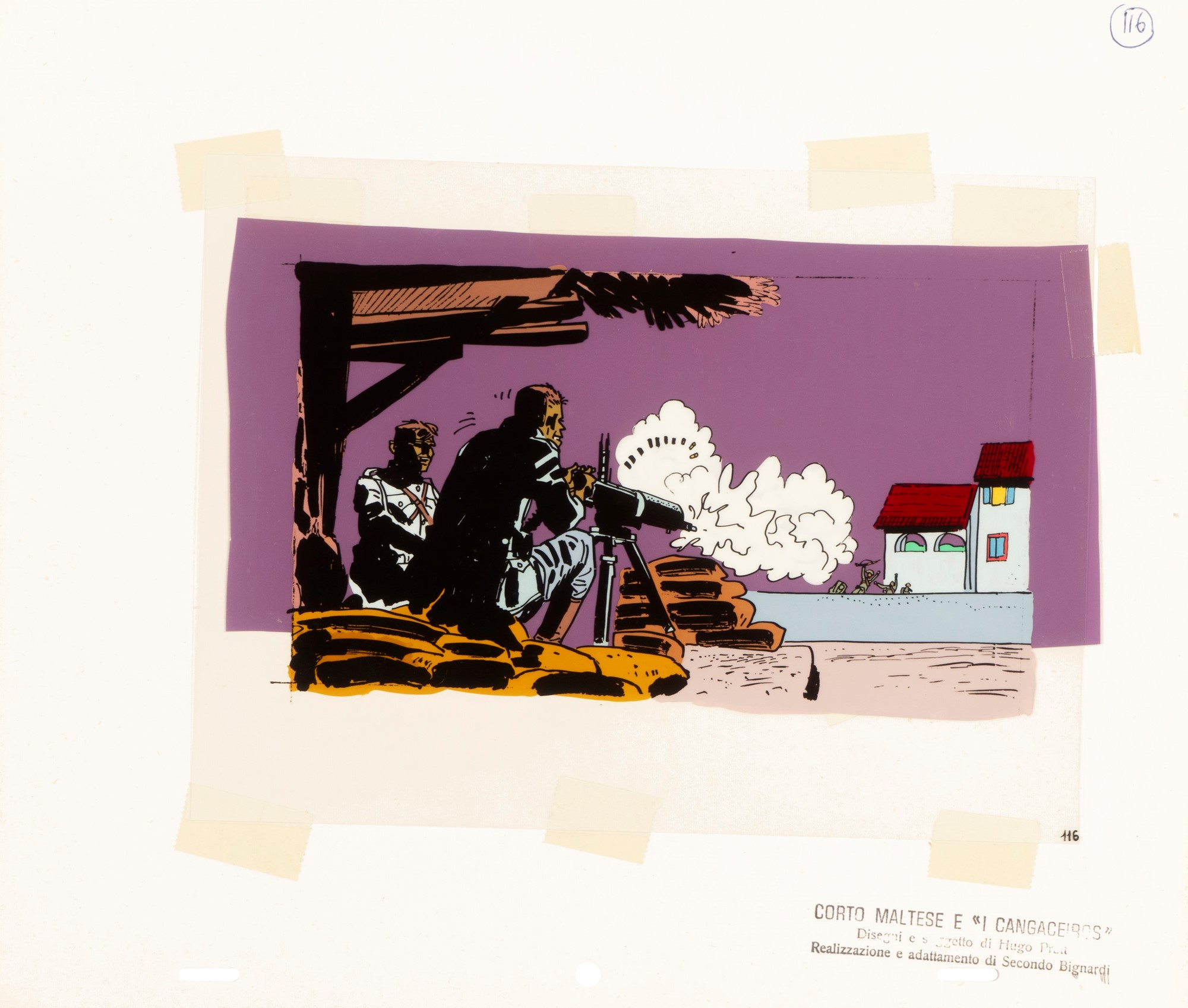 Cel originale realizzata dallo Studio Bignardi per il frame n. 116 de "I Cangaceiros", primo episodio della serie su Corto Maltese che sancisce la collaborazione di Pratt con lo studio di animazione modenese, episodio trasmesso per la prima volta nella trasmissione SuperGulp! nel 1972.
