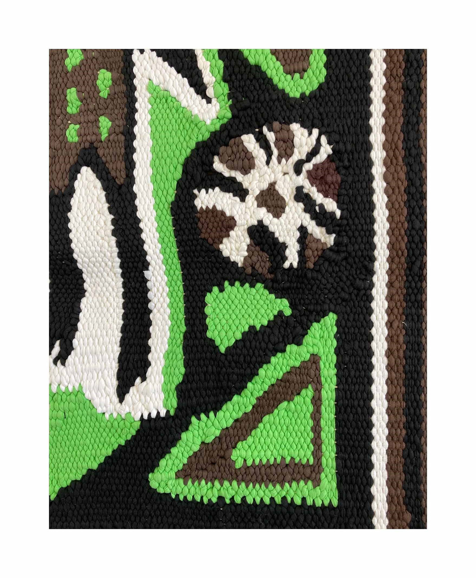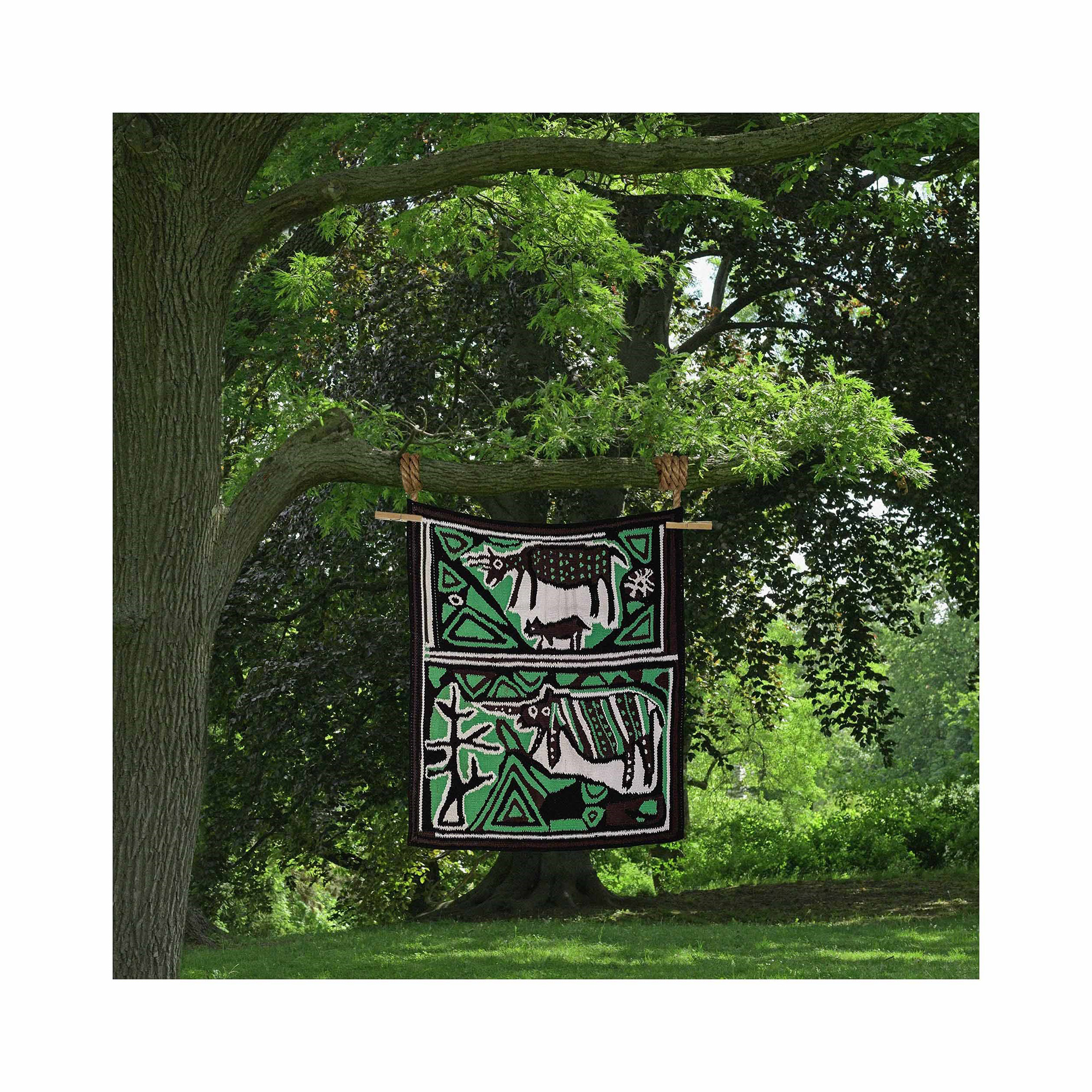 Saldulker Nawaaz, Another special reversible rug, designed and manufactured by South African designer Nawaaz Saldulker, in 2020, cotton with wildlife motifs in isolation, dimensions c. 156 cm x 123 cm. The Ellen Macarthur Foundation reports that if this trend continues, over 150 million tonnes of clothing waste will clog landfills by 2050. This rug is handwoven with discarded t-shirts, which is used as its raw material. A once-off handmade piece. The carpet is part of a small collection from a range, called '8 Acts Of Animal Confinement' made during quarantine in Austria while waiting for Covid-19 to subside. It was also part of D.A.C.(Designers Against Coronavirus) online exhibition curated by CaroselloLab, with concept and direction by Enrico Caputo and others. -- Unique Shipped from Austria Item liable to VAT Largh. 156 - Prof. 123 Cm 2020