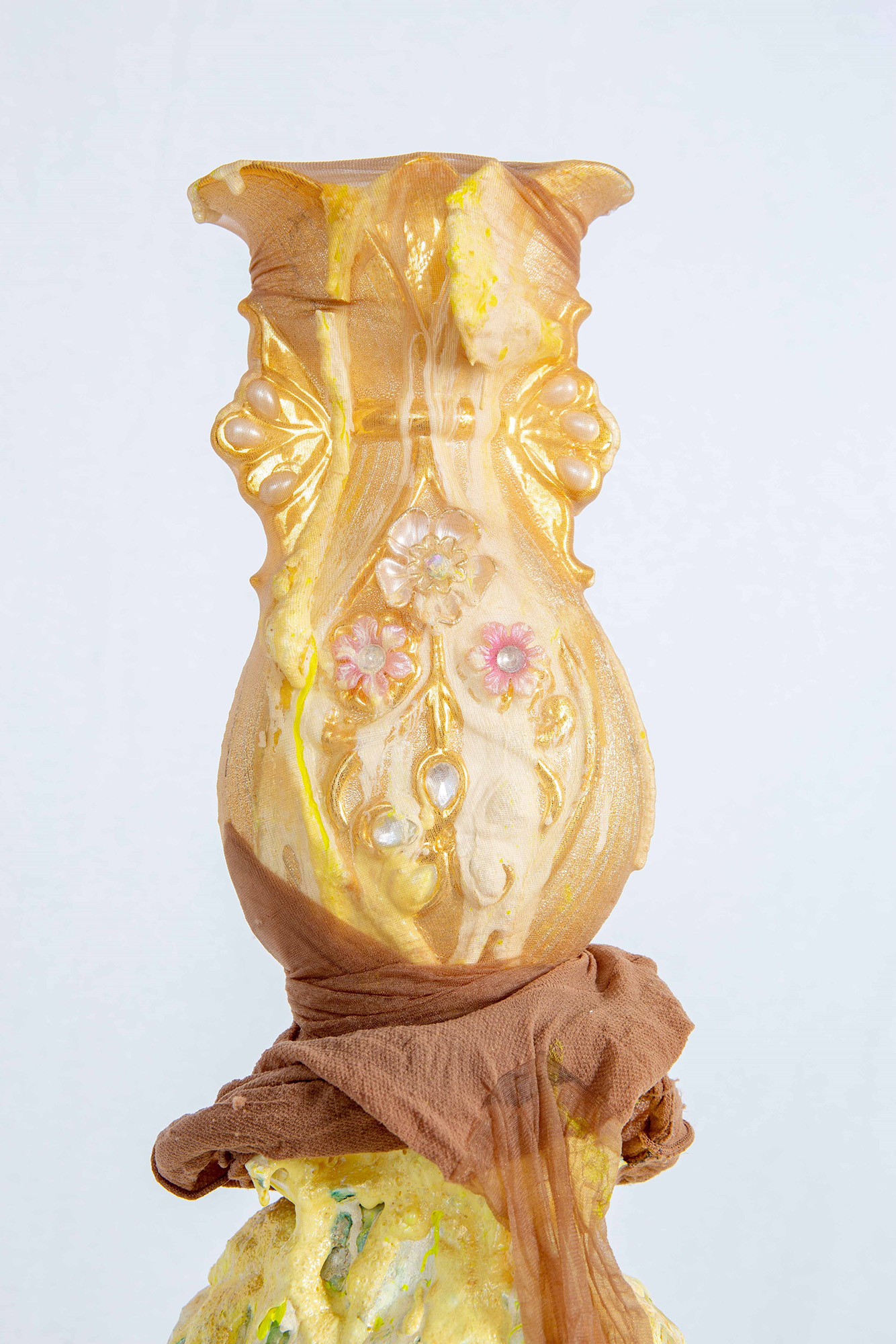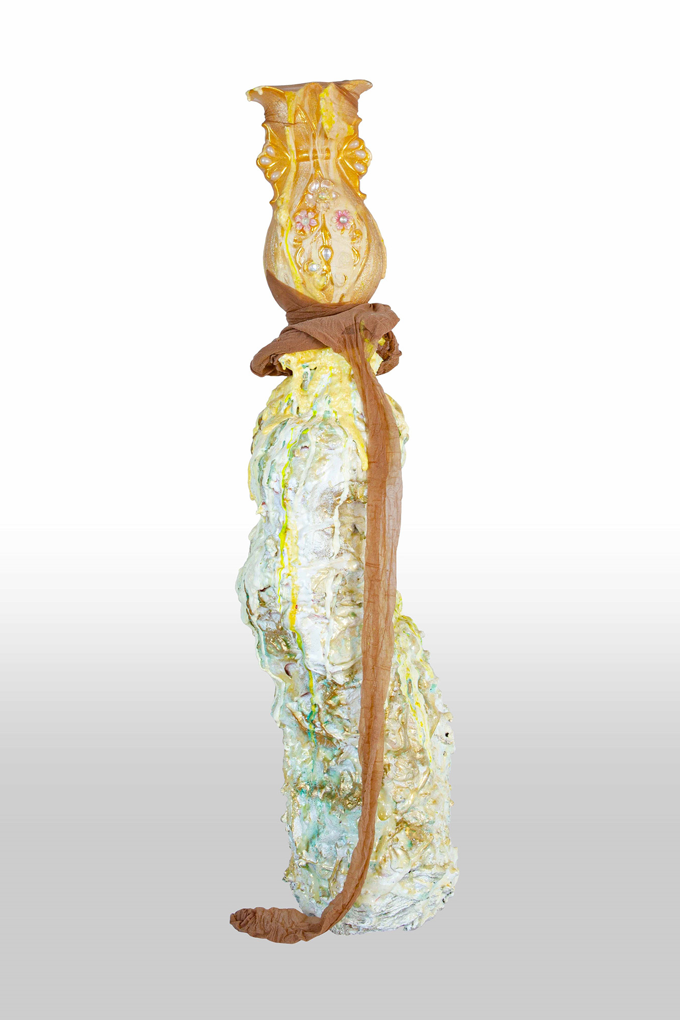 Quevedo Raquel, "Souvenir from Southern Crater, Mars” emphasises the impact of digital technologies on the process of creating them as well as their sub- sequent perception and anchoring in memory. This process uses fictional associations and fantasy, using a physical-virtual disconnect in pro- cesses and forms. Under the layer of materiality, questions arise about the transience of nature on the journey that unites the concepts of fiction vs. reality, virtuality vs. physicality, true vs. false, intuition vs. facts, designer vs. artist, individual vs. community. With an aesthetic of science fiction and horror vacui, the work seem to emerge from a neighboring planet. The artwork circumscribes the viewer in a laboratory simulation, in a specu- lative environment, to the ideas and/ or related concepts of matter, organ- isms, science, that which is natural, nature, ecosystems, landscapes, ter- ritories, energy, subsistence, extrac- tion, data, assets, thereby allowing new narratives in light of the interpel- lation of that which is human, objec- tual and natural in the current social and cultural context. "Souvenir from Southern Crater, Mars” moves between the modified (ar:ficial/technological) and the orig- inal (real/cul:vated) to confuse, mix and re-situate the habitual mecha- nisms of observa:on, representa:on and appearance. Quevedo combine vivid colors with surrealis:c textures, mixing digital and physical codes with gesture in an intriguing affirma:on of life’s synergies. -- Unique Shipped from Spain Item liable to VAT Largh. 9 - Prof. 9 - Alt. 37 Cm 2019