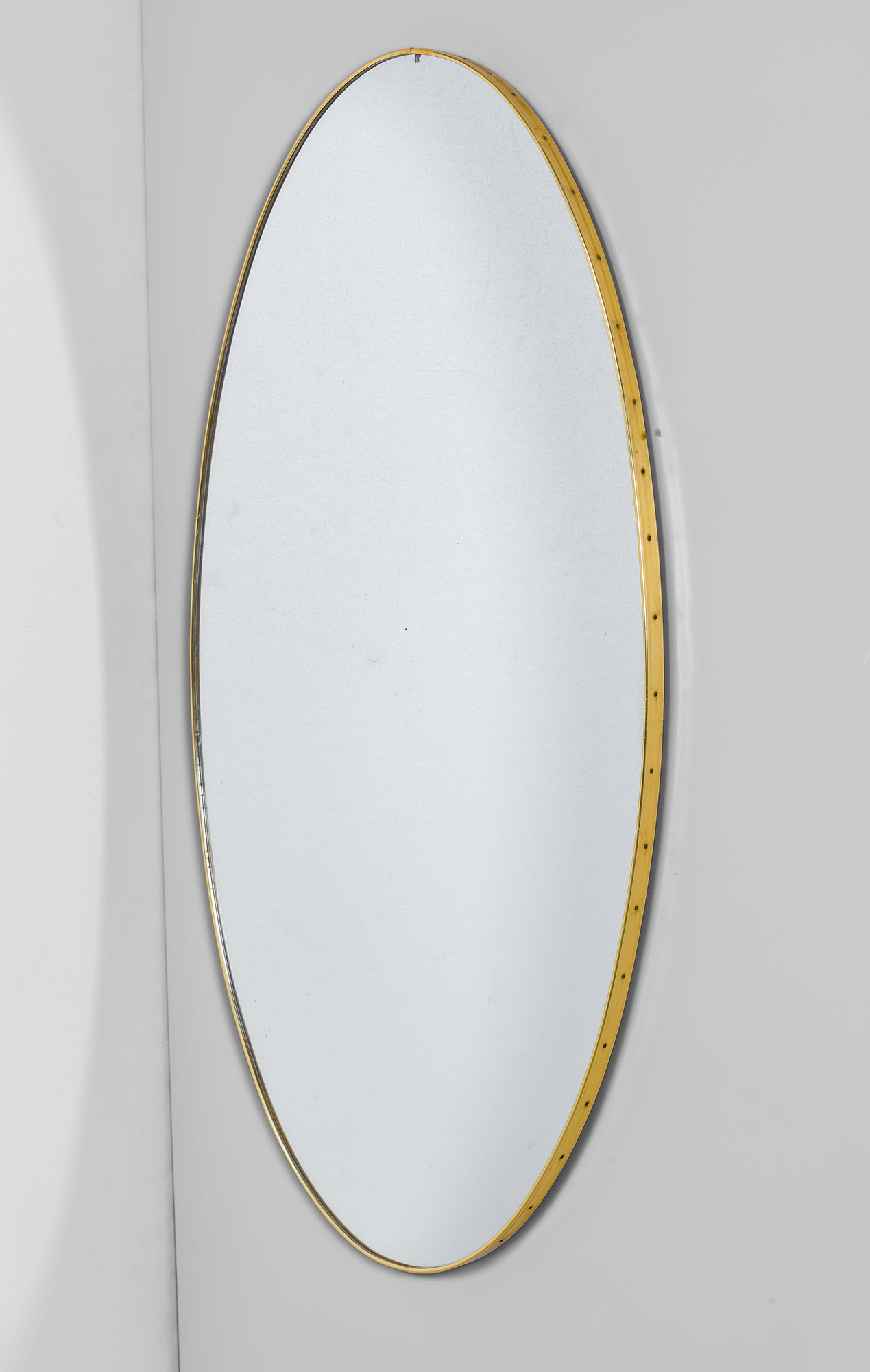 Due specchi ovali con struttura in legno e profilo in ottone., Prod. Italia, 1950 ca. cm 96x47