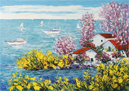IALENTI ANTONIO (n. 1937) Marina toscana. Olio su tela . Cm 70,00 x 50,00. Firma in basso a destra. Al retro firma per autentica e titolo. Autentica dell'artista su fotografia.