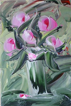 BELLINI ATTILIO ATTBELL (n. 1939) Fiori. Olio su tela. Cm 35,00 x 50,00....