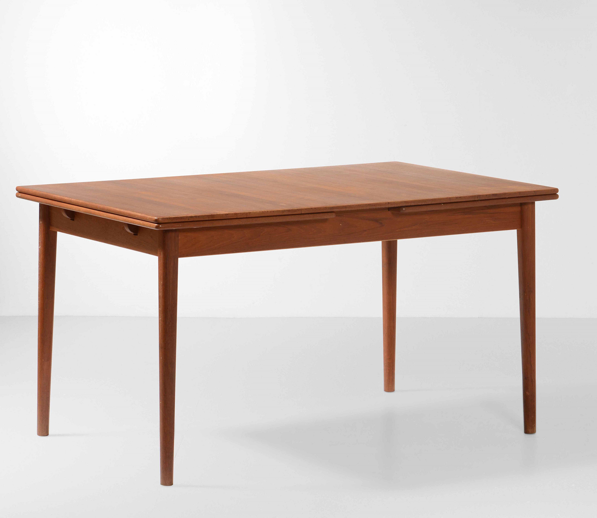 Nils Jonsson, Tavolo allungabile con struttura e piano in legno. Prod. Italia, 1960 ca. chiuso cm 135x75x85; aperto cm 249x75x84
