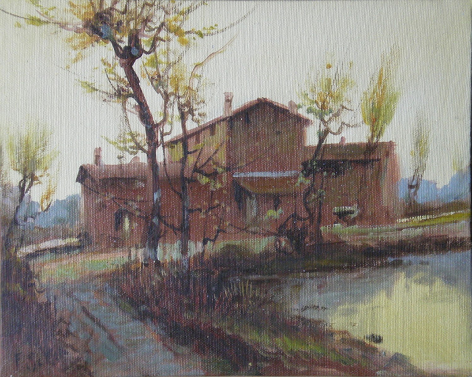 SCHILLER F. Paesaggio. Olio su tela. Cm 30,00 x 40,00. Firma in basso a sinistra.