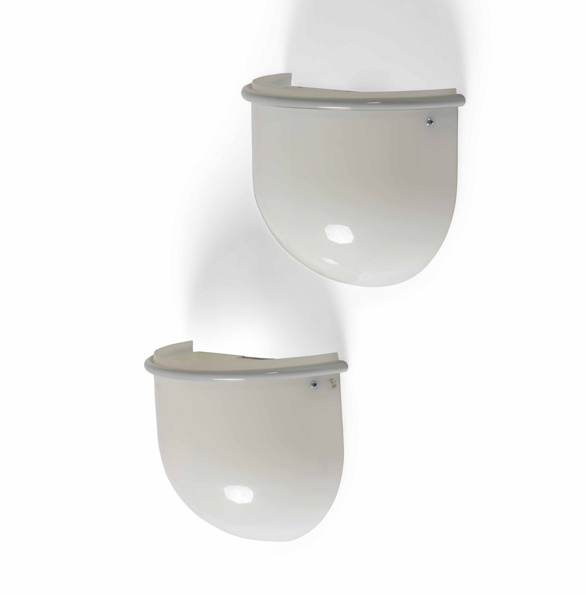 La Murrina, Coppia di lampade da parete con struttura in metallo e diffusore in vetro di Murano. Etichetta originale. Prod. La Murrina, Italia, 1970 ca. cm 27x23x14