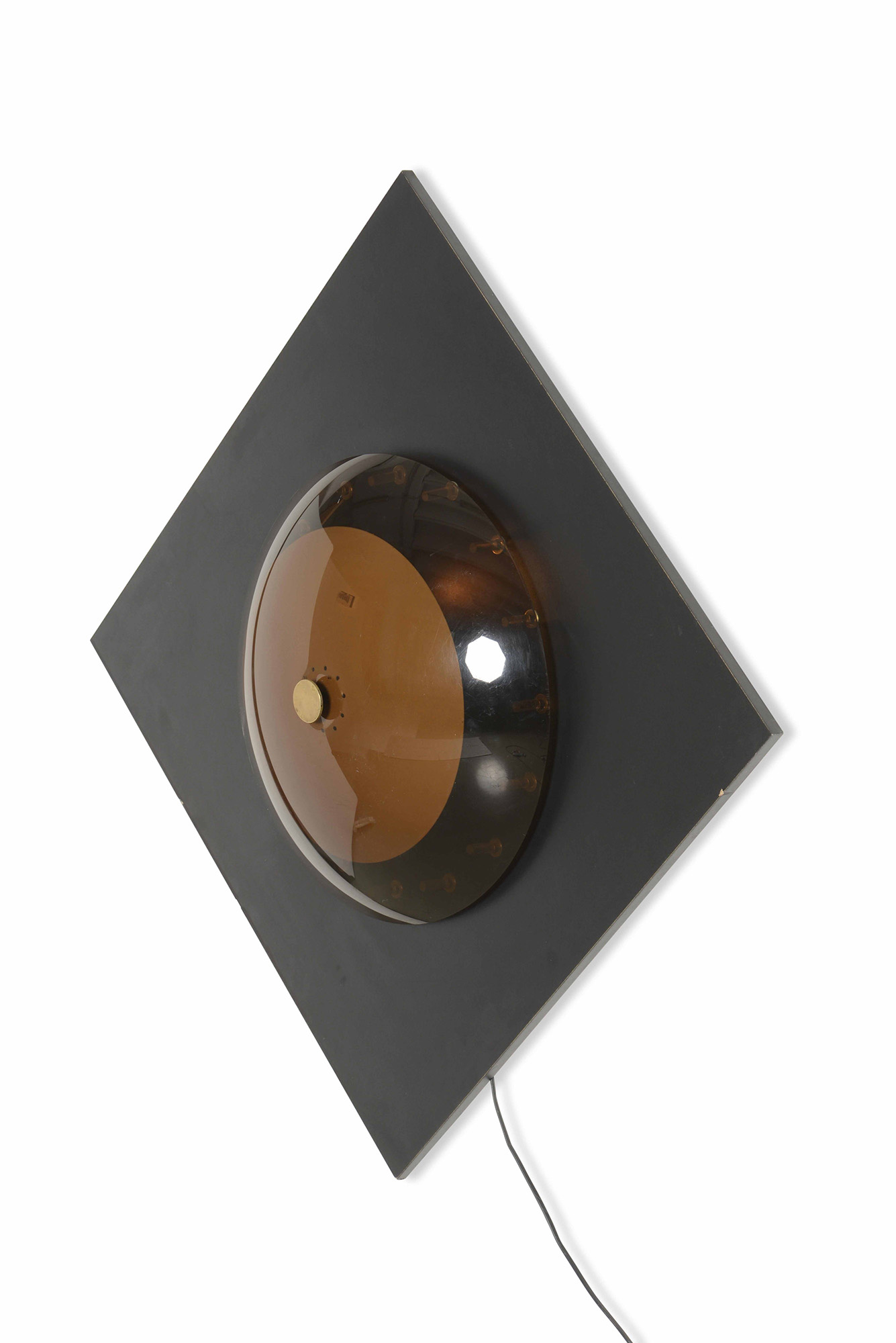 Lampada da parete con struttura in legno e perspex., Prod. Italia, 1970 ca. cm 105x105x9