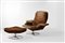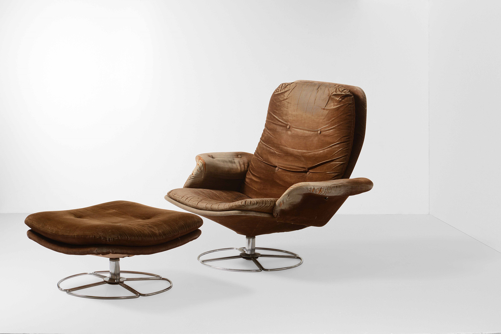 Lot 338 | Poltrona e pouf con struttura in metallo cromato e rivestimento in tessuto.,