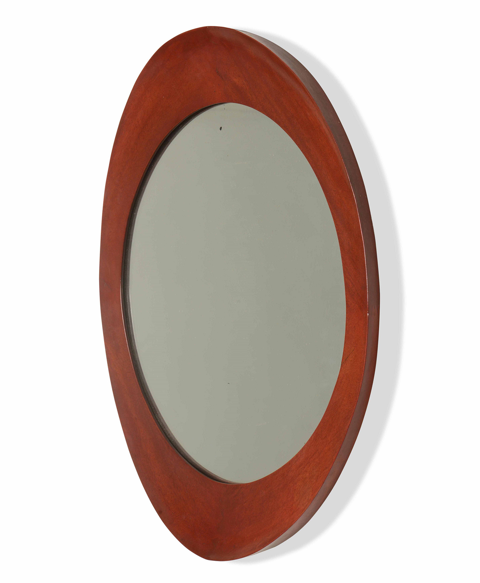 Franco Campo e Carlo Graffi, Specchiera con struttura e cornice in legno curvato. Prod. Home, Italia, 1970 ca. cm 73x62x4