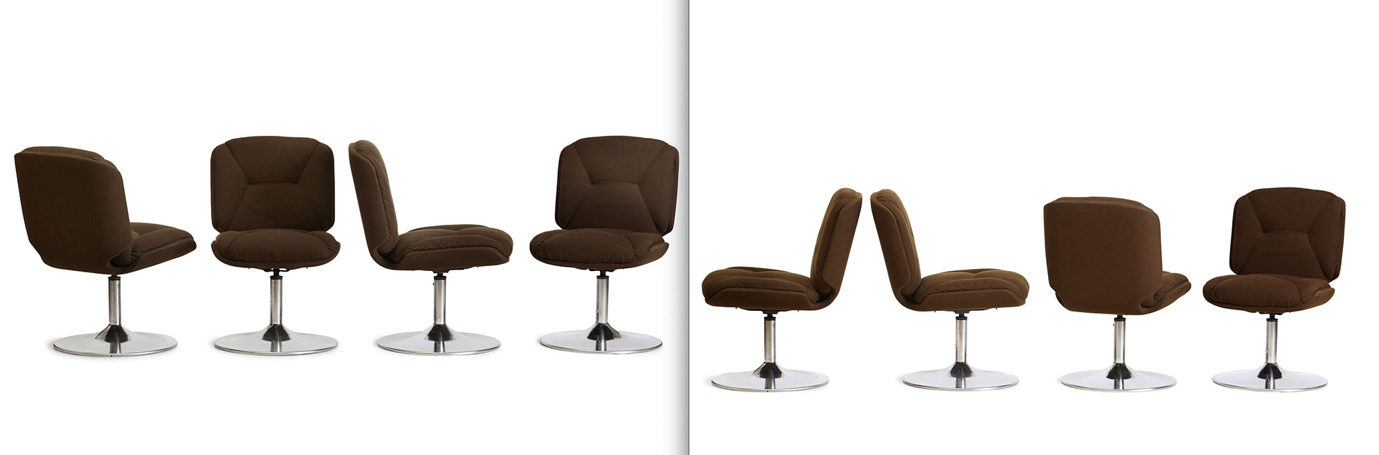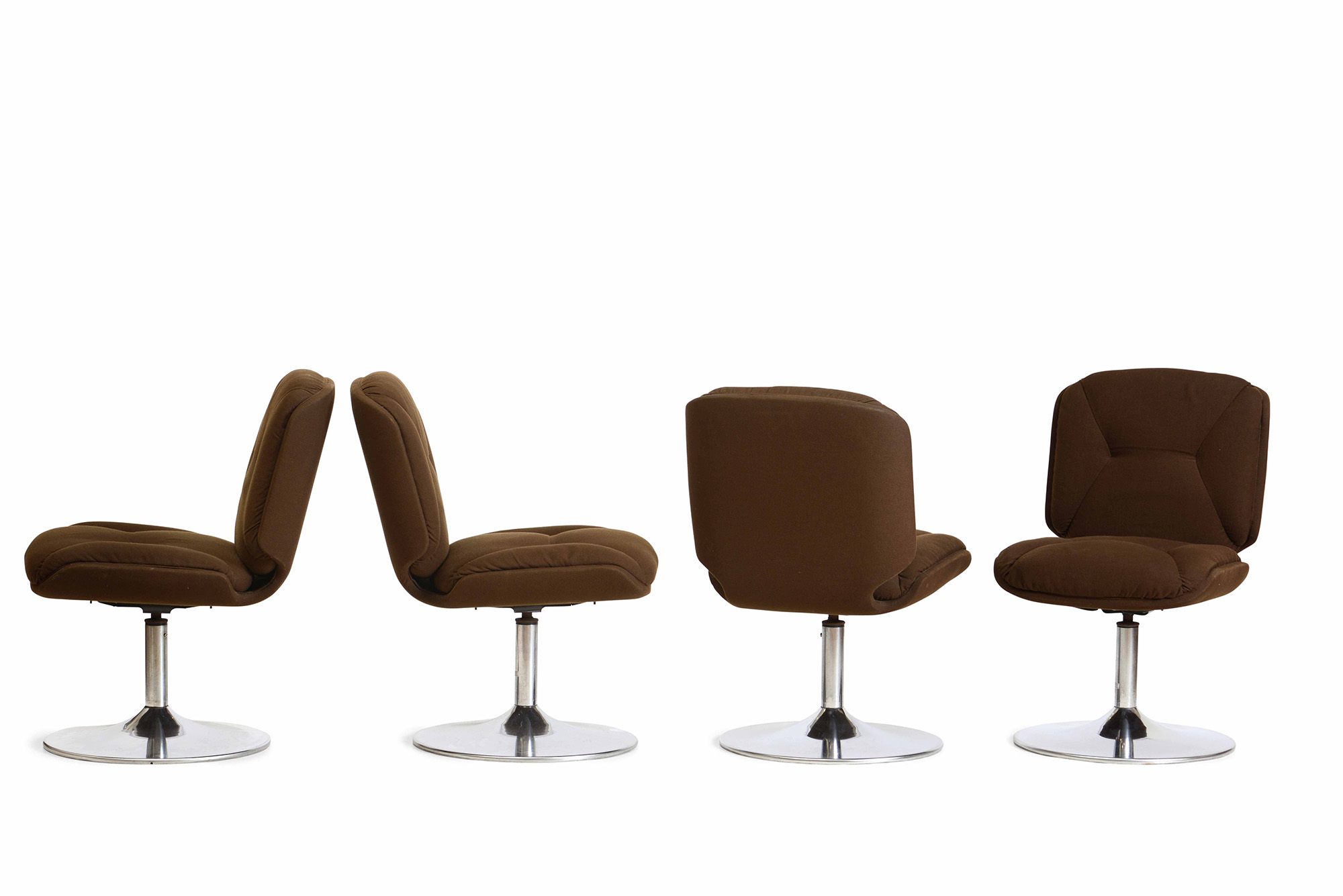 Otto sedie girevoli con struttura e base in metallo cromato, rivestimento in tessuto., Prod. Italia, 1970 ca. cm 52x58x81