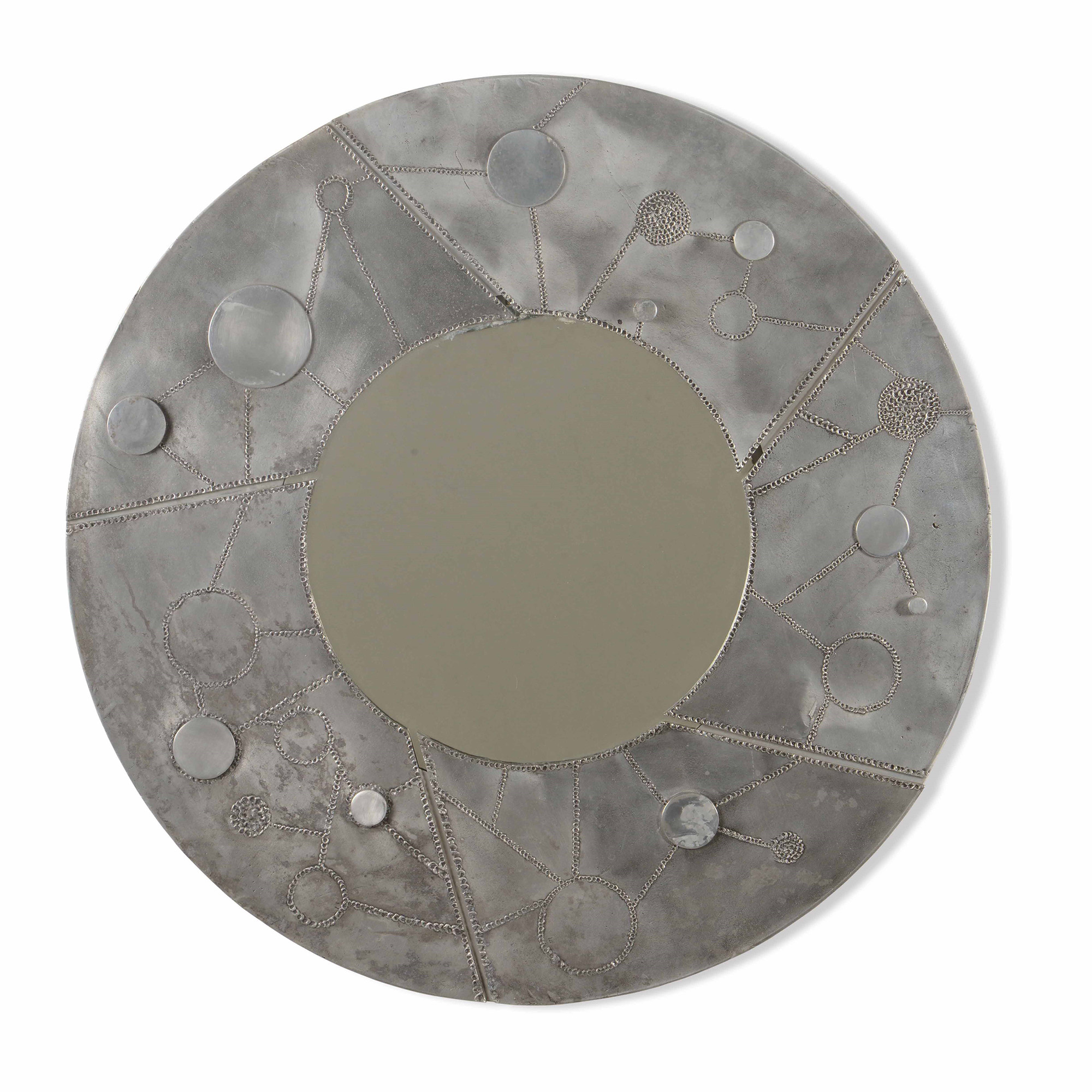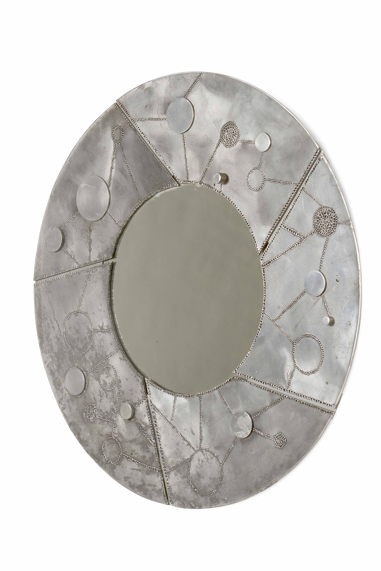 Bianca Garinei, Specchiera con grande cornice in alluminio sbalzato. Prod. Banci, Italia, 1970 ca. cm 100x3