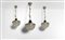 Sergio Mazza, Tre lampade a sospensione mod. Pi Cavo, struttura in alluminio satinato e laccato e diffusore in vetro acidato. Prod. Artemide, Italia, 1970 ca. cm 26x26x72