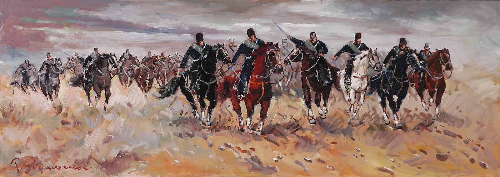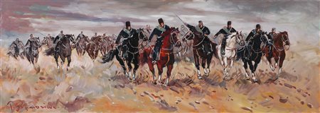 SIGNORINI TRISTANO Senza titolo. Olio su tavola. Cm 70,00 x 25,00. Firma in basso a sinistra.