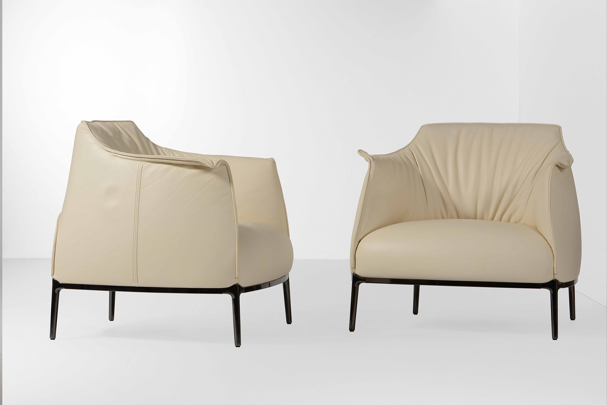 Jean-Marie Massaud, Coppia di poltrone mod. Archibald con struttura in metallo e rivestimenti in pelle. Prod. Poltrona Frau, Italia, 2000 ca. cm 70x80x77