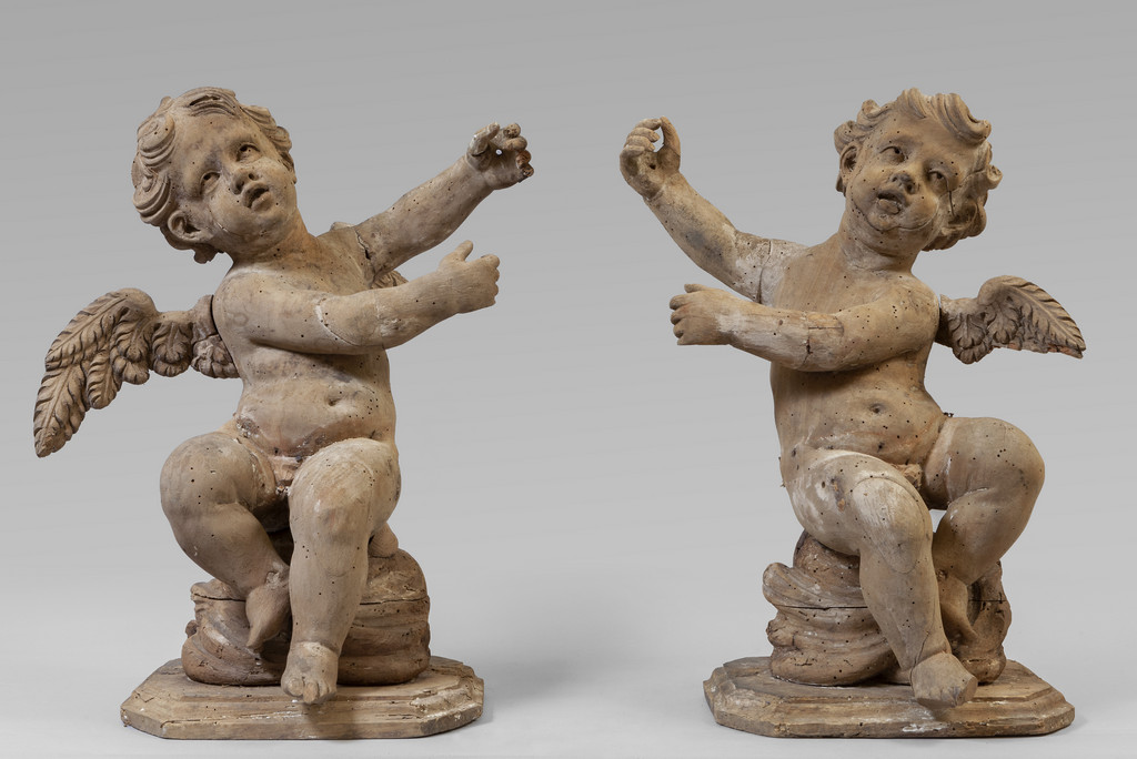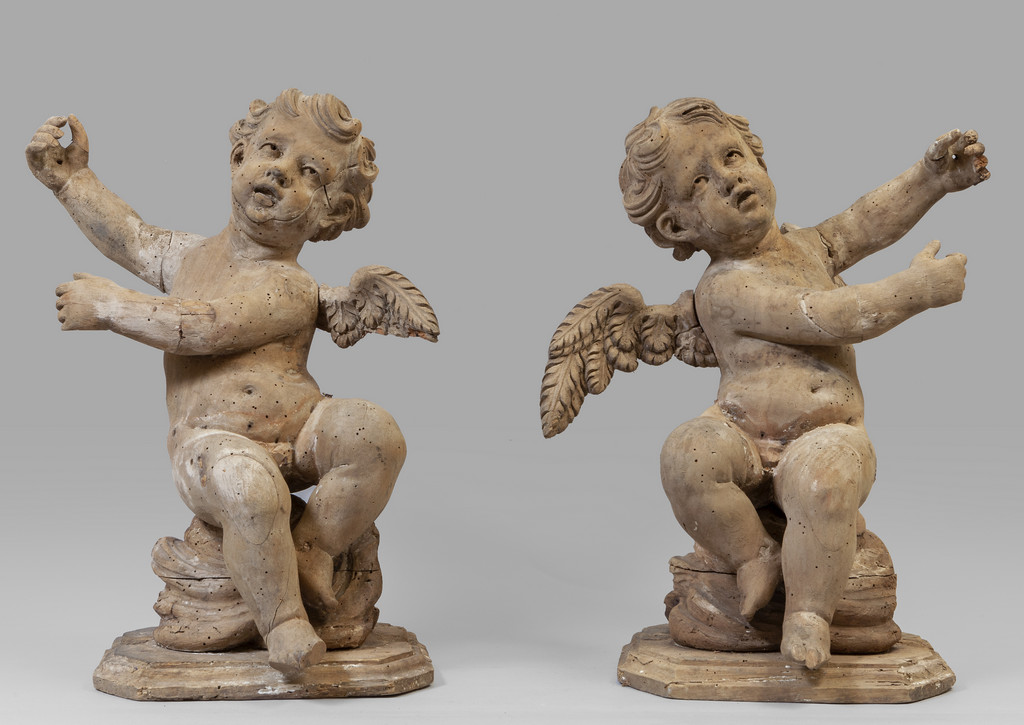 Angeli coppia di sculture in legno naturale sec.XVIII