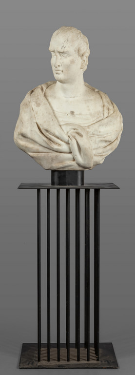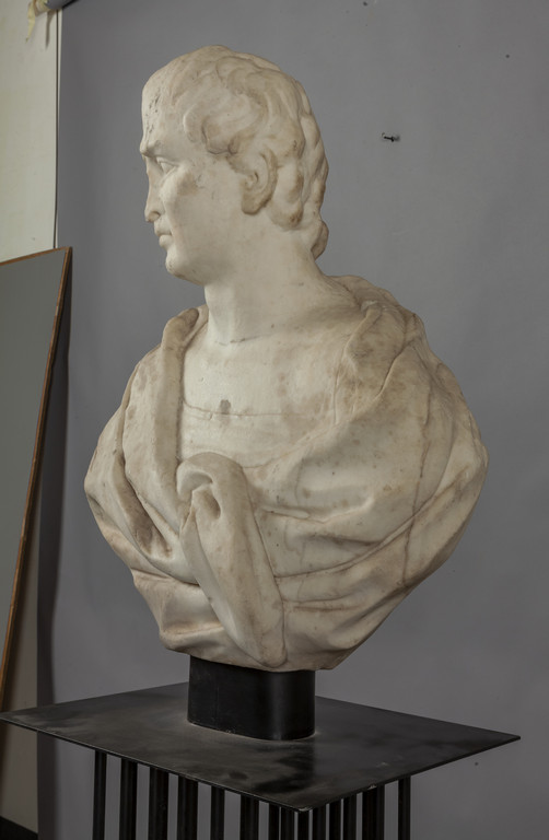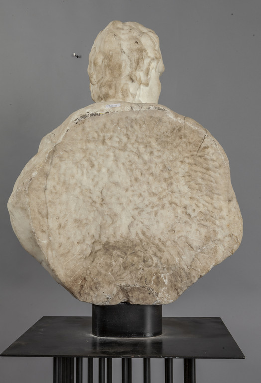 Busto virile in marmo sec.XVII poggiante su base in ferro battuto