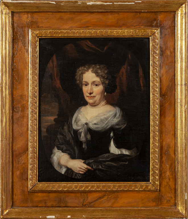 Scuola inglese sec.XVII 'Ritratto di signora con orecchini di perle' olio