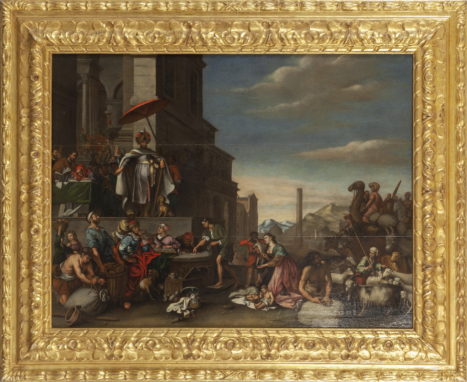 Scuola fiamminga sec.XVII 'La gabella al sultano' olio