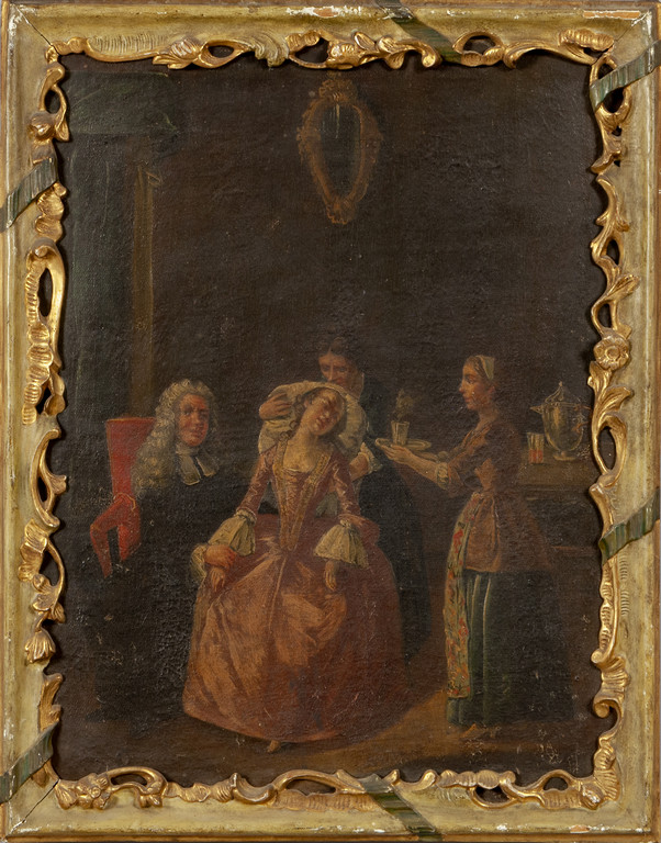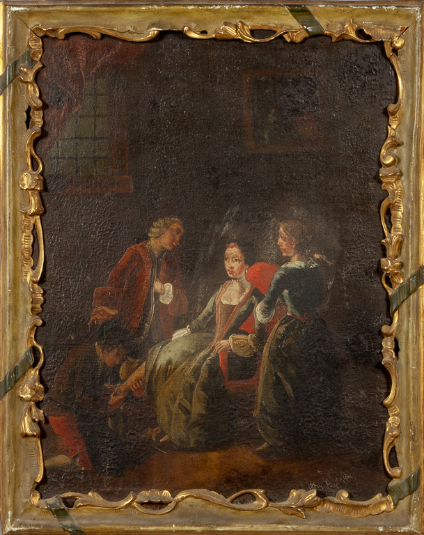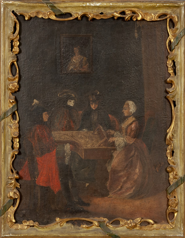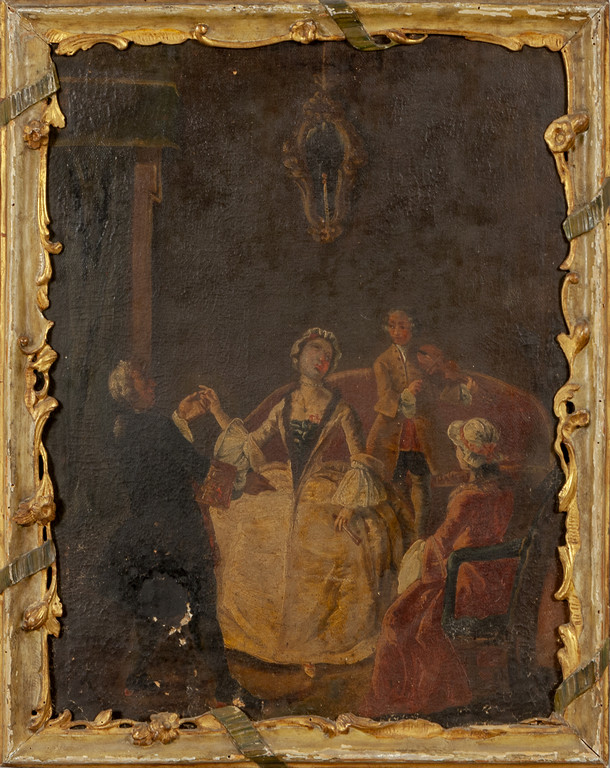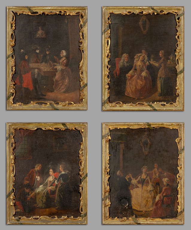 Scuola veneta sec.XVIII 'Scene di interno animate da molte figure' quattro olii