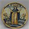 Tondo in ceramica decorato in policromia con la Vergine circondata da Angeli e stemma nobiliare in basso a sinistra d.to 1642